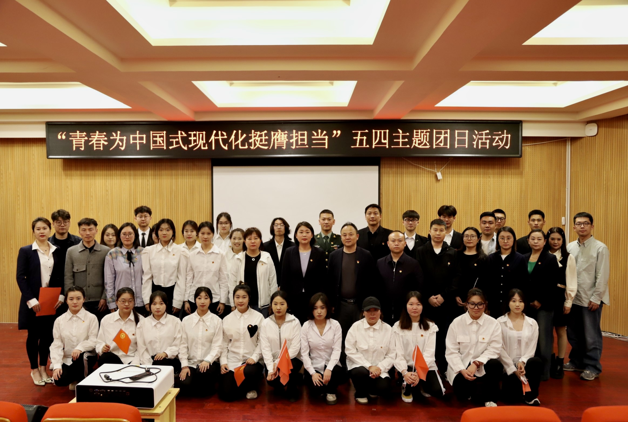 校团委书记苏伦高娃、副书记胡斯勒,音乐学院党总支书记齐占柱、党总支副书记白银亮,各学院团总支负责人、共青团干部以及音乐学院2022级音乐学班全体同学参加了此次活动。