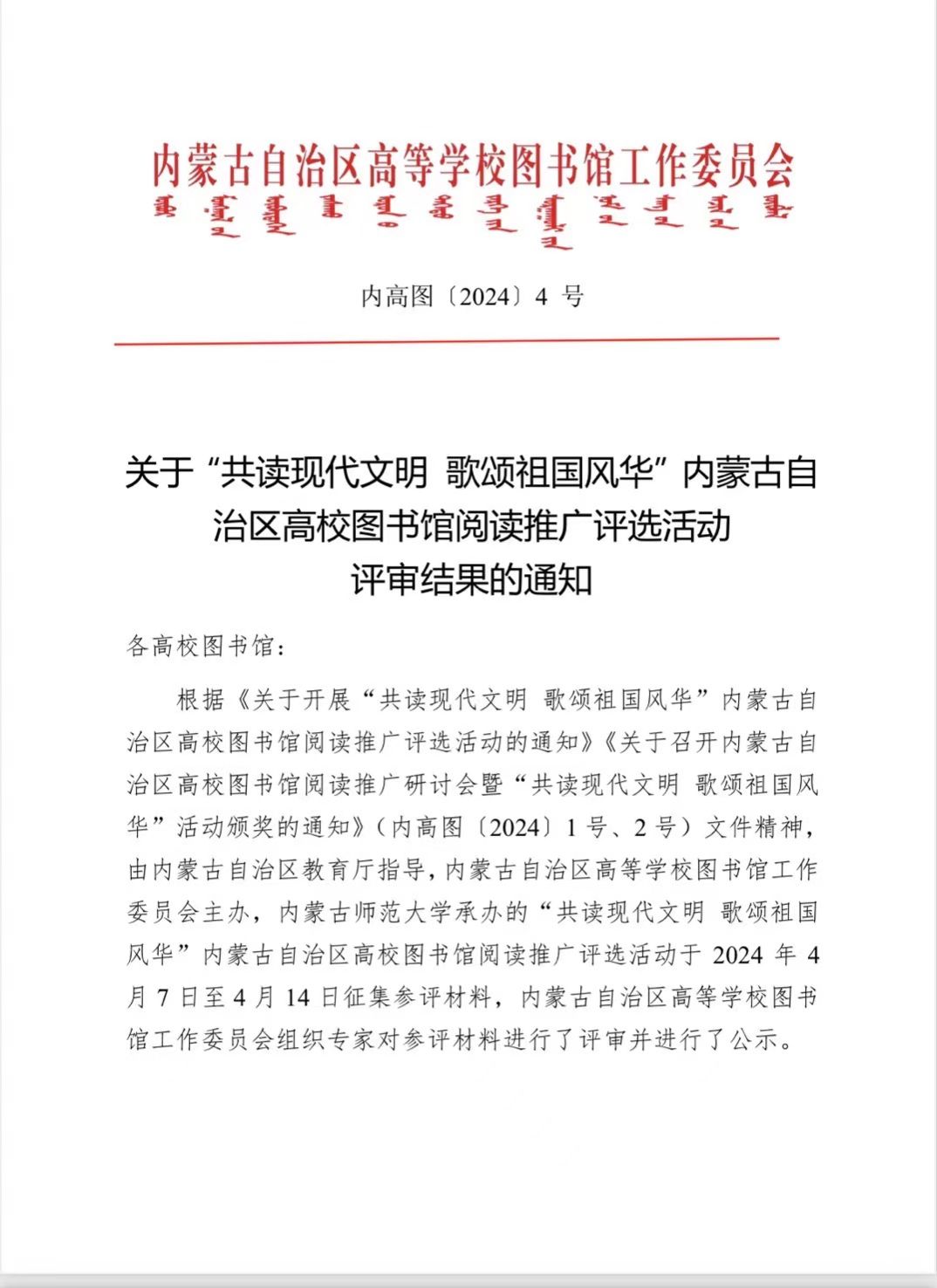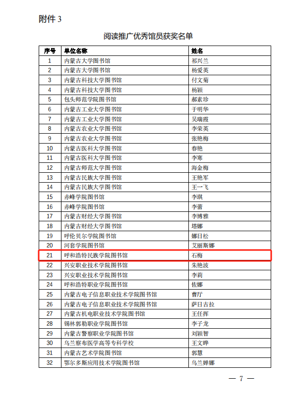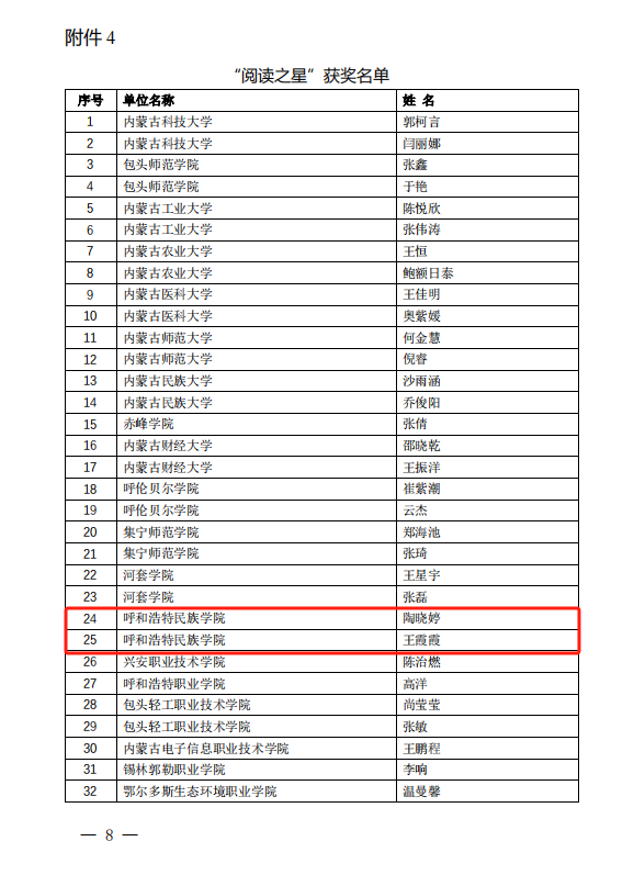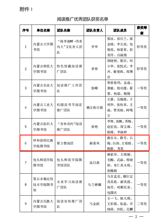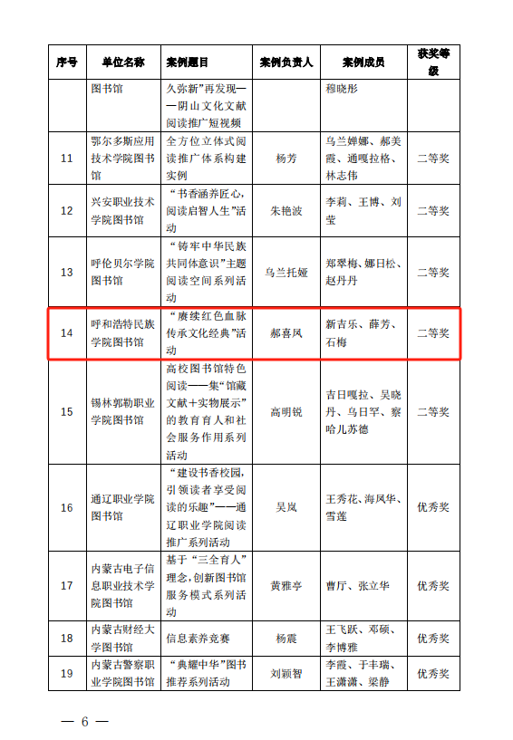 近日,由内蒙古教育厅指导、内蒙古自治区高等学校图书馆工作委员会主办、内蒙古师范大学图书馆、北京超星集团承办的“内蒙古自治区高校图书馆阅读推广研讨会暨‘共读现代文明 歌颂祖国风华 ’颁奖活动”在内蒙古师范大学举行。会议表彰了2023年在全区高校阅读推广活动中的优秀案例、优秀团队、优秀馆员及阅读之星。Beat365图书馆“聚力智阅团”被评为阅读推广优秀团队一等奖;《赓续红色血脉 传承文化经典》案例荣获阅读推广优秀案例二等奖;图书馆石梅荣获“阅读推广优秀馆员”称号;文学院陶晓婷、王霞霞被评为“阅读之星”。