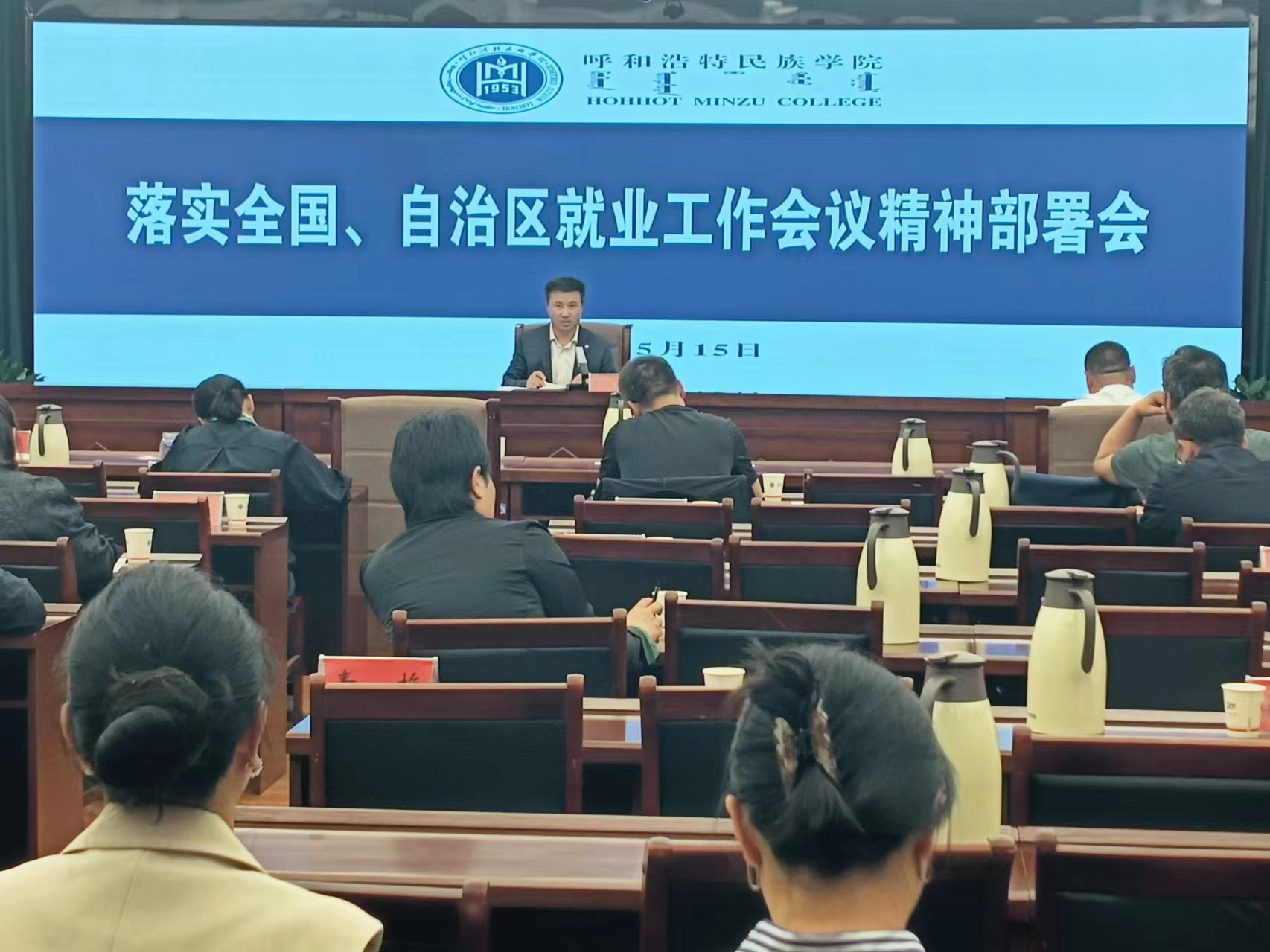 5月15日上午,学校在综合楼12楼召开落实全国、自治区毕业生就业工作会议精神部署会。党委委员、副校长额尔敦布和出席会议并讲话。各学院相关负责同志参会。