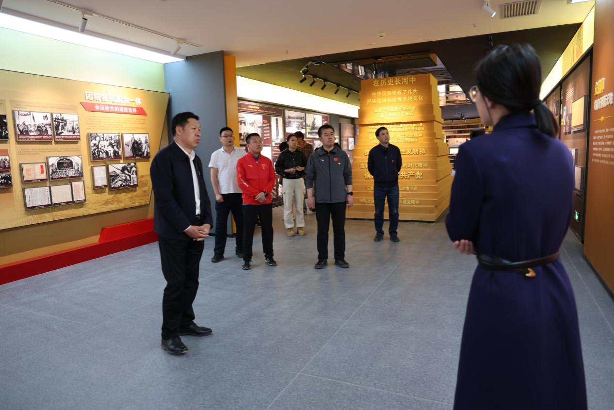 为了深入开展“感党恩、听党话、跟党走”群众教育实践活动,按照“民族政策宣传月”活动安排,5月15日,党政办党支部前往学校铸牢中华民族共同体意识教育馆开展主题党日活动。校党委书记刘九万以普通党员的身份参加此次活动。