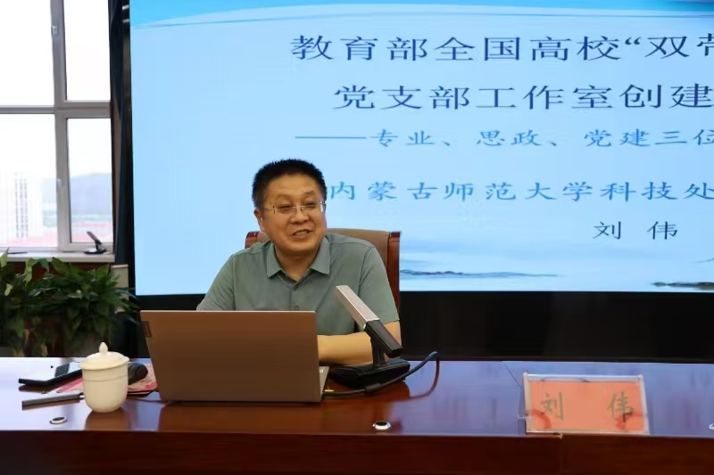刘伟以《专业、思政、党建——三位一体创建模式》为主题,从研读申报文件、重视课程思政、申报材料的提炼三个方面进行详细的工作经验分享。刘伟以内蒙古师范大学全国高校“双带头人”教师党支部书记工作室为例,总结经验提出一是项目驱动内涵支撑;二是教学科研与思政教育高度契合;三是团队力量:集中力量办大事;四是创新意识:精品党建活动;五是发挥落实“双带头人”机制;六是平台意识:做好宣传推介。