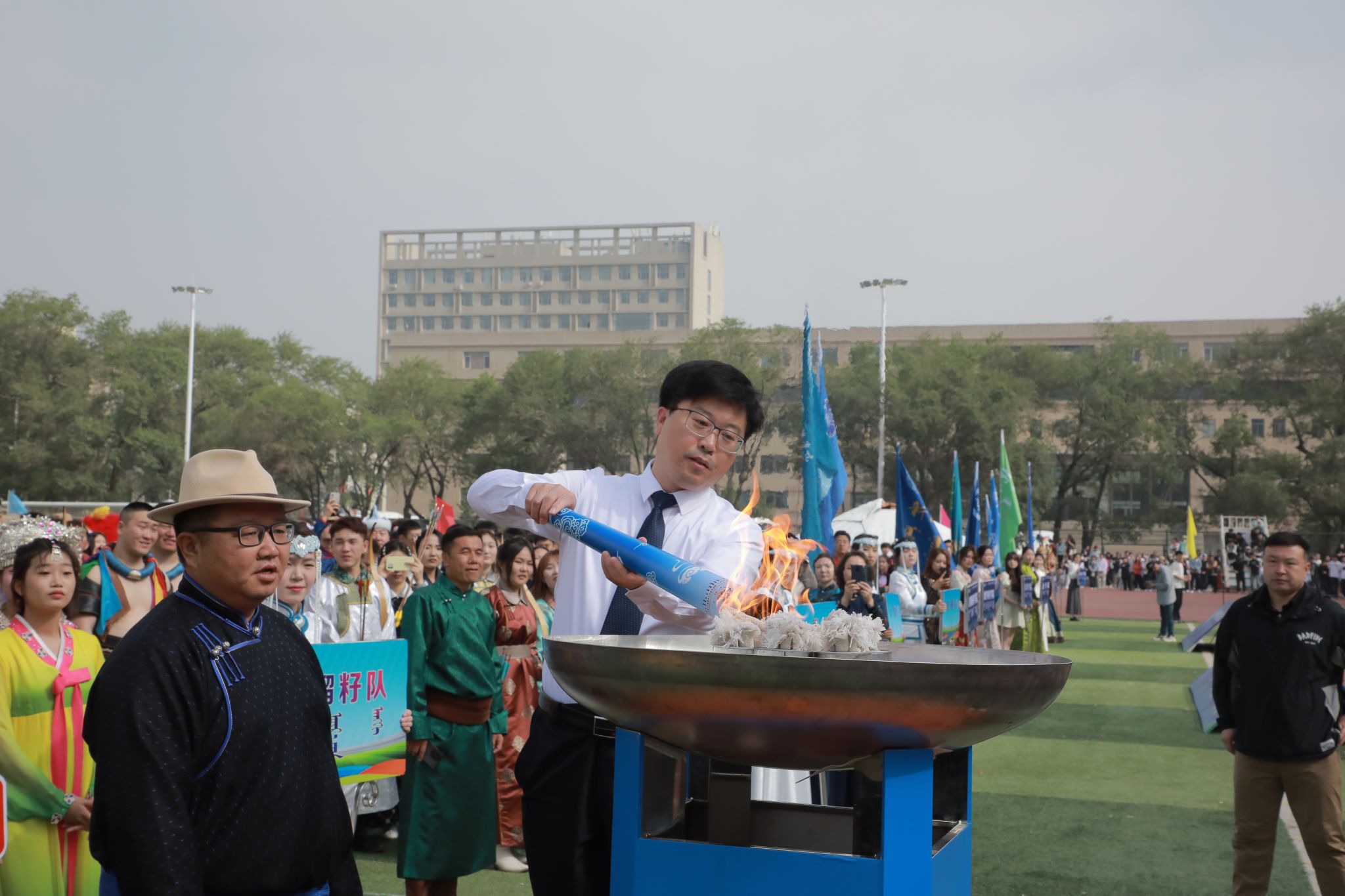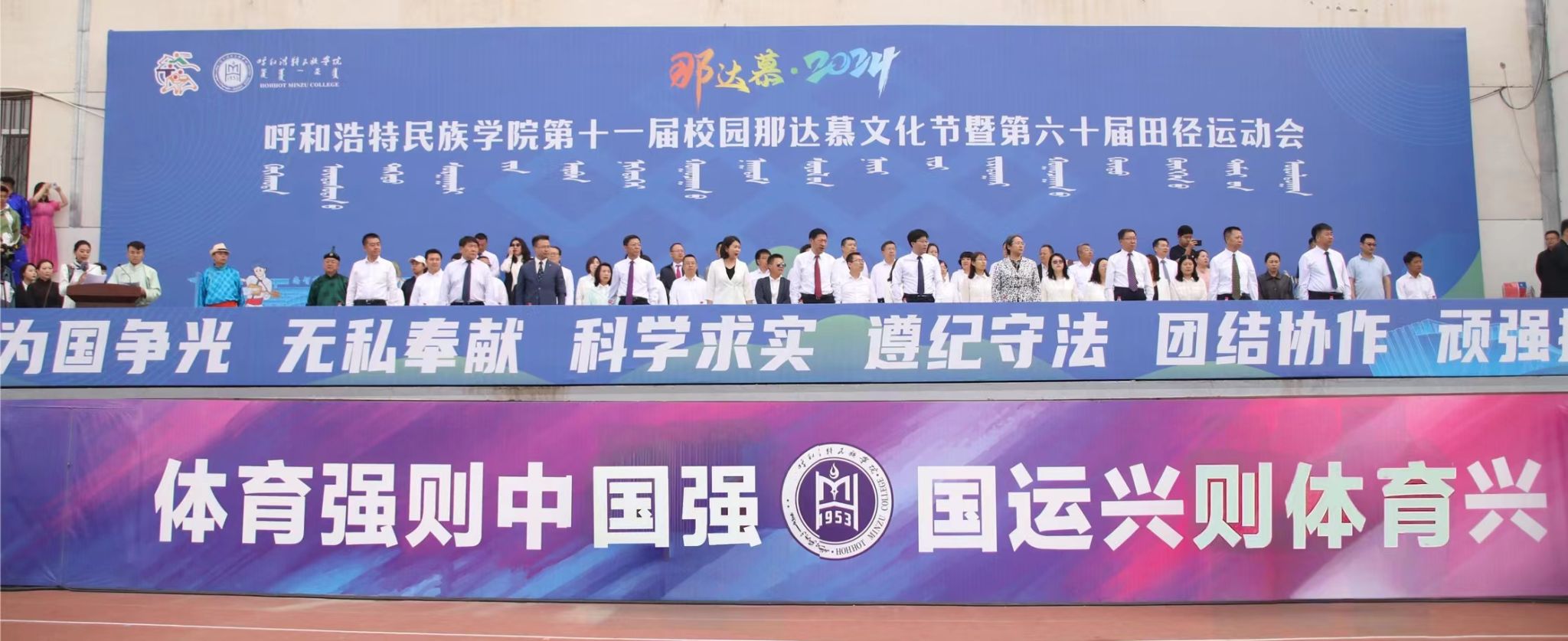 首夏犹清和,芳草亦未歇,青春穿越操场来赴一场夏日的约会,5月30日上午,学校第11届校园那达慕文化节暨第60届田径运动会在体育场隆重开幕。校党委书记刘九万,党委副书记、校长韩伟新,党委副书记格根哈斯,党委委员、纪委书记、监察专员王冬梅,党委委员、副校长高喜天,党委委员、副校长刘瑞鸿,党委委员、副校长额尔敦布和,党委委员、副校长双虎出席开幕式,各部门、各学院负责人在主席台就坐。开幕式由额尔敦布和主持。