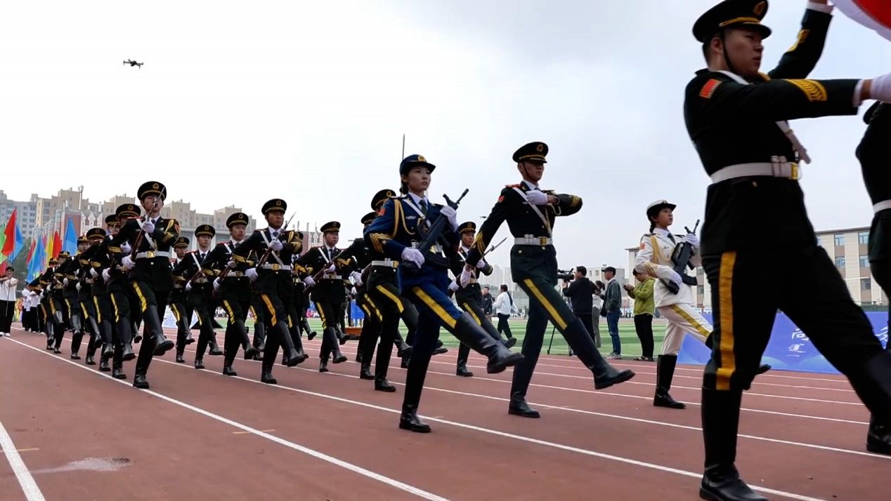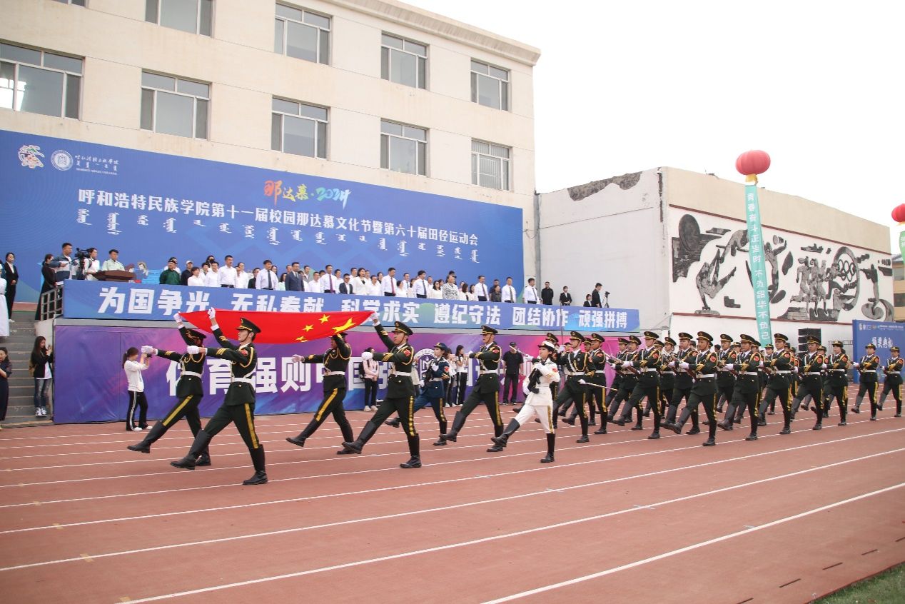 伴随着激昂的乐曲声,迎着初升的朝阳,国旗护卫队踏着整齐划一的步伐,昂首阔步入场。彩旗队、石榴籽方队、武术队、搏克队、布鲁队、射箭队、蒙古象棋队、沙嘎哈日靶队、包根吉日格队、抢枢队及各学院代表队依次入场。十七个学院师生身着节日盛装,逐一经过主席台接受检阅。师生们精神抖擞、英姿勃发,展现了呼民院人朝气蓬勃、锐意进取、积极向上的精神风貌。
