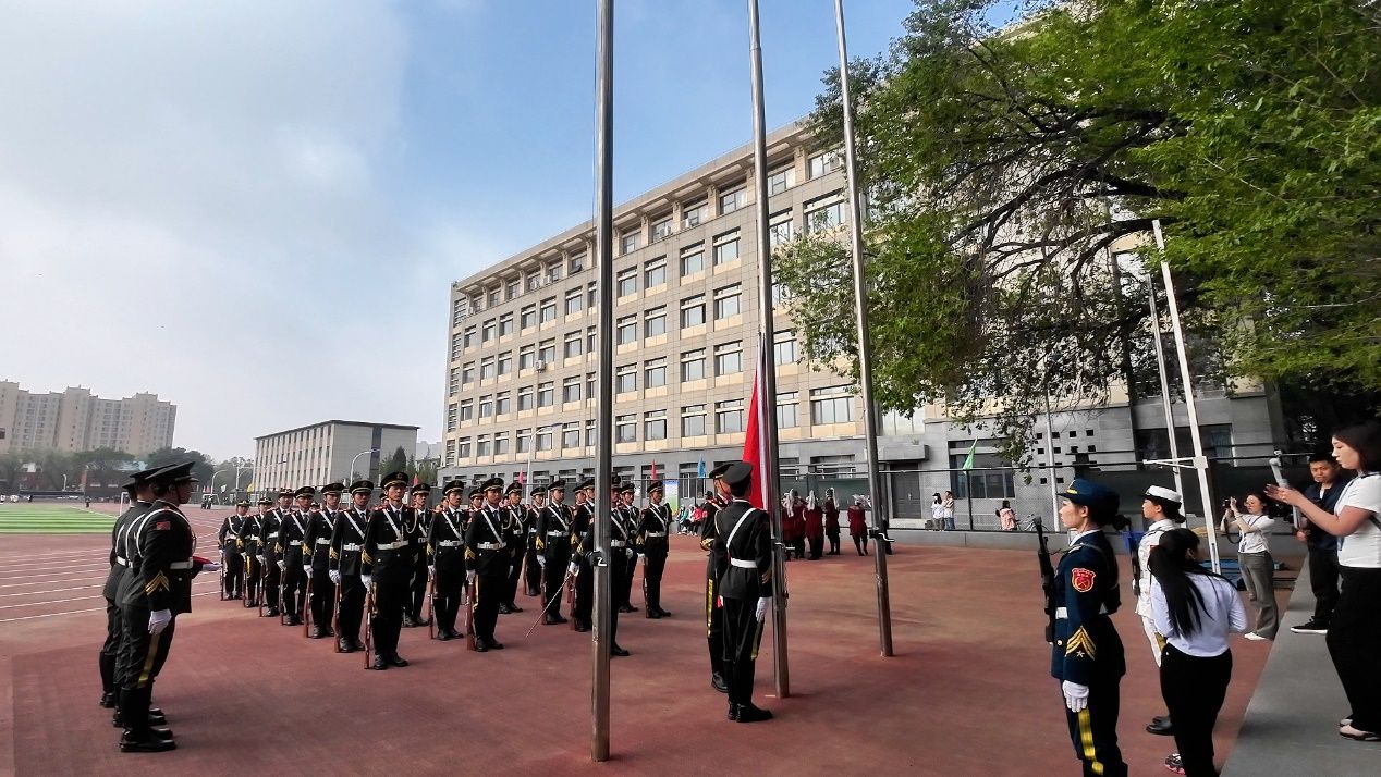升国旗仪式上,全体师生起立,注视着五星红旗冉冉升起,齐唱国歌。