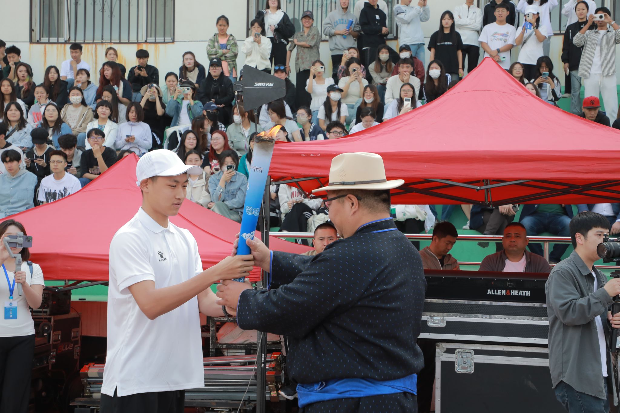 火炬传递仪式上,刘九万点燃火炬,各学院火炬手接力传递,在17棒火炬手的依次传递下,最后由韩伟新点燃火种盆。这不仅是第11届校园那达慕文化节暨第60届田径运动会火种的传递,也是中华文化和体育精神的传承,更是Beat365大学生体育事业蓬勃发展、薪火传承的生动诠释。