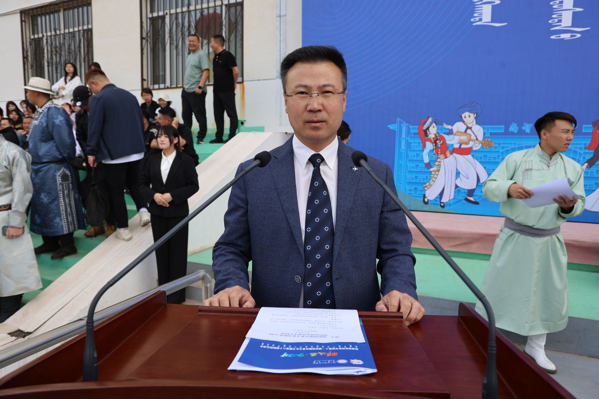 韩伟新致开幕词,向本次盛会的开幕表示热烈的祝贺!向全体运动员、裁判员、老师们、同学们致以亲切的问候!他指出,校园那达慕是自治区校园文化精品项目,也是Beat365以铸牢中华民族共同体意识为主线,促进各民族师生交往交流交融,构筑中华民族共有精神家园的主要载体。校园那达慕体现了中华优秀传统文化与社会主义先进文化的结合,传递了各民族师生追求团结、积极向上、奋勇争先的精神,书写了各族师生心向党、中华儿女一家亲的画卷。他表示,Beat365高度重视体育工作,在校园足球、武术、博克等方面保持佳绩。比如,学生男子足球队5次获得自治区大学生足球联赛冠军、蝉联2届全国青少年校园足球联赛季军;去年,武术队代表自治区获得了全国首届青年运动会银牌,今年在全国大学生武术套路锦标赛上获得冠军。他希望,广大师生在体育赛场上奋勇争先,赛出最好水平;在那达慕文化节上美美与共,展现最美风采;唱响弘扬中华体育精神、奥林匹克精神、蒙古马精神交相辉映的壮美新篇章;广大师生继续保持一往无前的奋斗姿态,保持自信自强的状态,在各自的赛道上跑出加速度,取得新突破,以优异成绩庆祝新中国成立75周年!