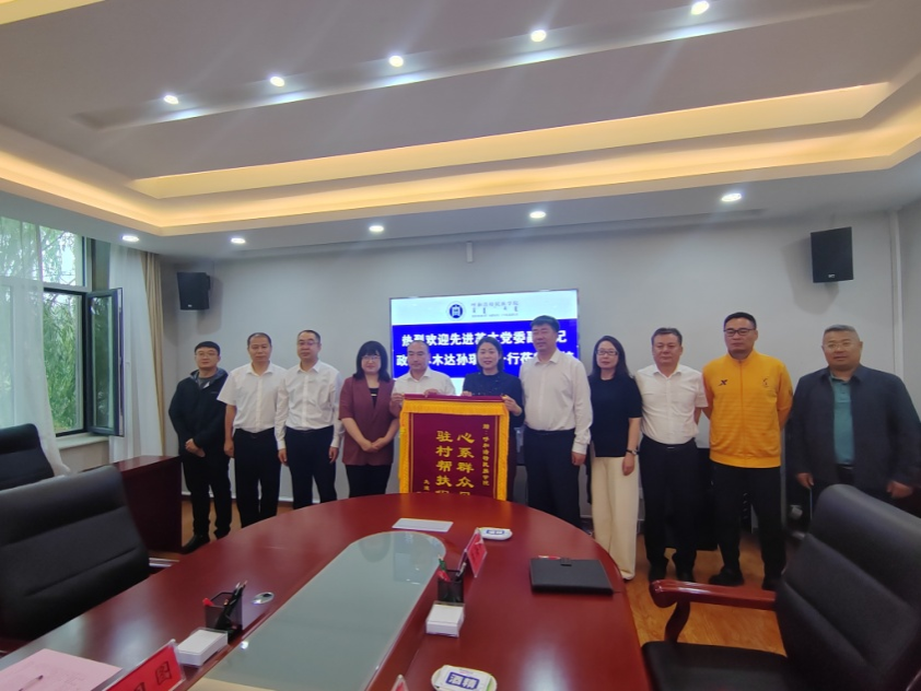 座谈会上,格根哈斯向孙瑞冰一行介绍了学校基本情况。孙瑞冰介绍了奈林稿村接受Beat365包联帮扶以来开展的工作情况及取得的积极成效,充分肯定了Beat365派出驻村干部、奈林稿村第一书记胡宝泉同志的工作。希望Beat365在助力奈林稿村乡村振兴工作方面开创新局面,同时向学校赠送了锦旗。与会人员就如何更好推进校地合作、落实帮扶工作方面进行了交流发言。