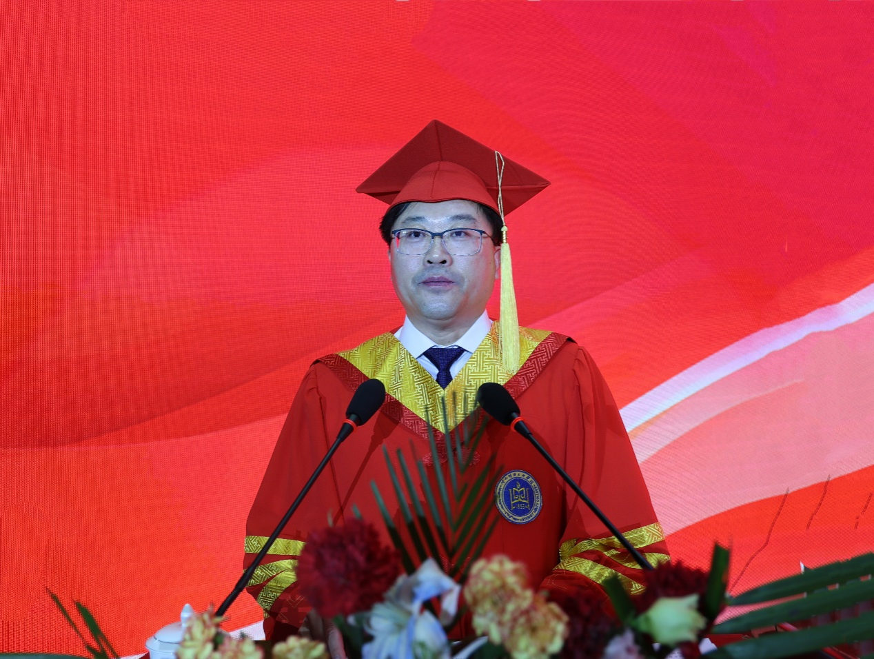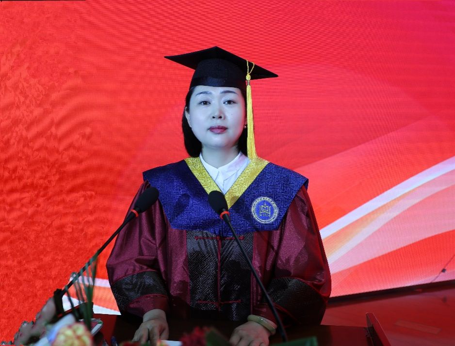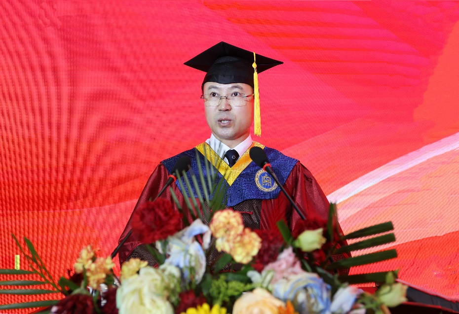 在题为《愿一切美好都会与你同行》的毕业致辞中,校长韩伟新深情回顾了2024届毕业生与母校一起度过的不平凡青春岁月和不一般大学时光。他表示,这四年,我们一起见证历史,一个个关键历史节点,一桩桩重大历史事件,我们不是旁观者,我们是亲历者、是见证者、是创造者。他勉励大家,要守牢立身之本,做爱国奉献的呼民院人;要铸牢精神之魂,做团结进步的呼民院人;要打牢成事之基,做艰苦奋斗的呼民院人。他希望,毕业生继续弘扬一往无前的蒙古马精神,矢志奋斗,自觉做能吃苦、肯奋斗的新时代青年,在不断磨砺中积累自信,在敢闯敢拼中练就真才实干,努力成为堪当民族复兴大任的时代新人。