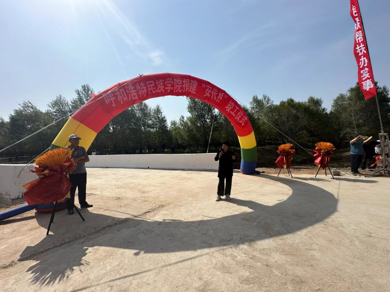 奈林稿嘎查为学校赠送“真情建造安代桥,心系百姓助振兴”锦旗。嘎查群众自发表演安代舞、好来宝等精彩节目,表达对学校帮扶的感恩之心,共同庆祝这个特殊的日子。