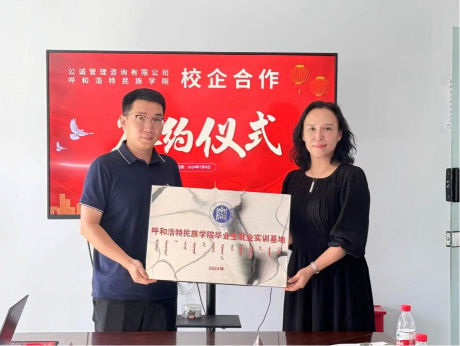为深化校企合作,实现校企联动、协同育人,7月4日下午,校党委委员、纪委书记、监察专员王冬梅一行赴公诚管理咨询有限公司内蒙古分公司开展访企拓岗活动,并举行签约授牌仪式。