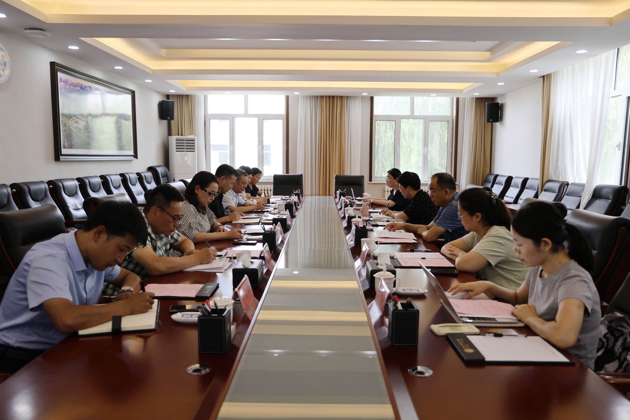 王学惠介绍了本次监督检查的工作背景,目的、要求和工作纪律。额尔敦布和对自治区财政厅多年来对Beat365的关心和支持表示感谢,并从学校基本情况、国有资产管理工作职责及制度建设、2022-2023年度政府采购情况等方面,进行了汇报,指出了存在的不足和下一步的工作意见。会后,监督检查组一行实地开展数据查看和分析等工作。