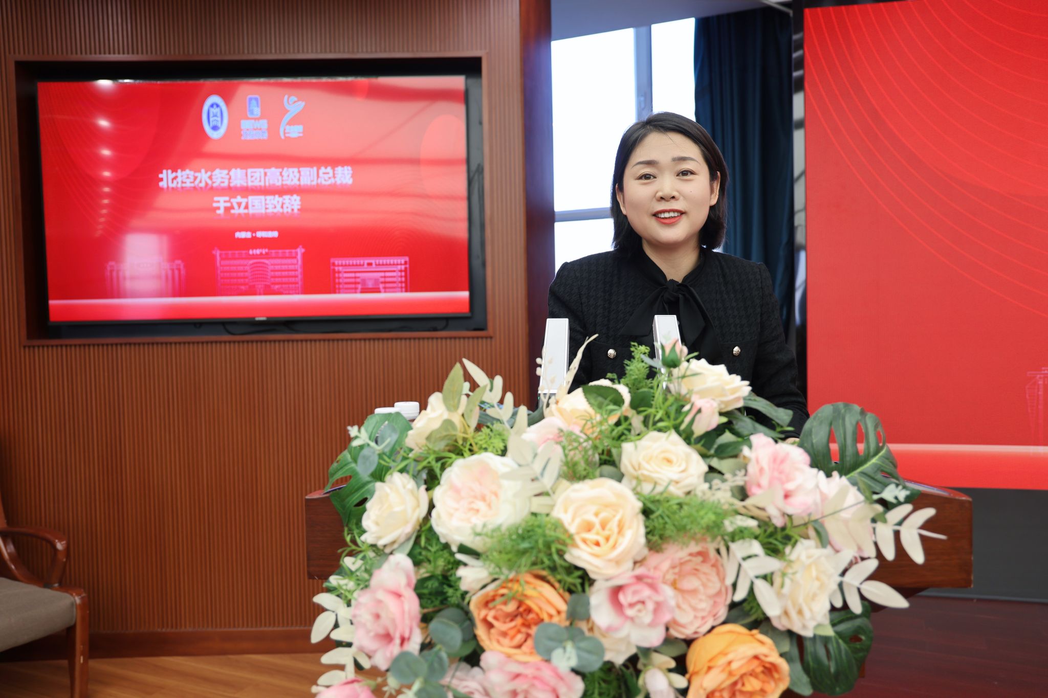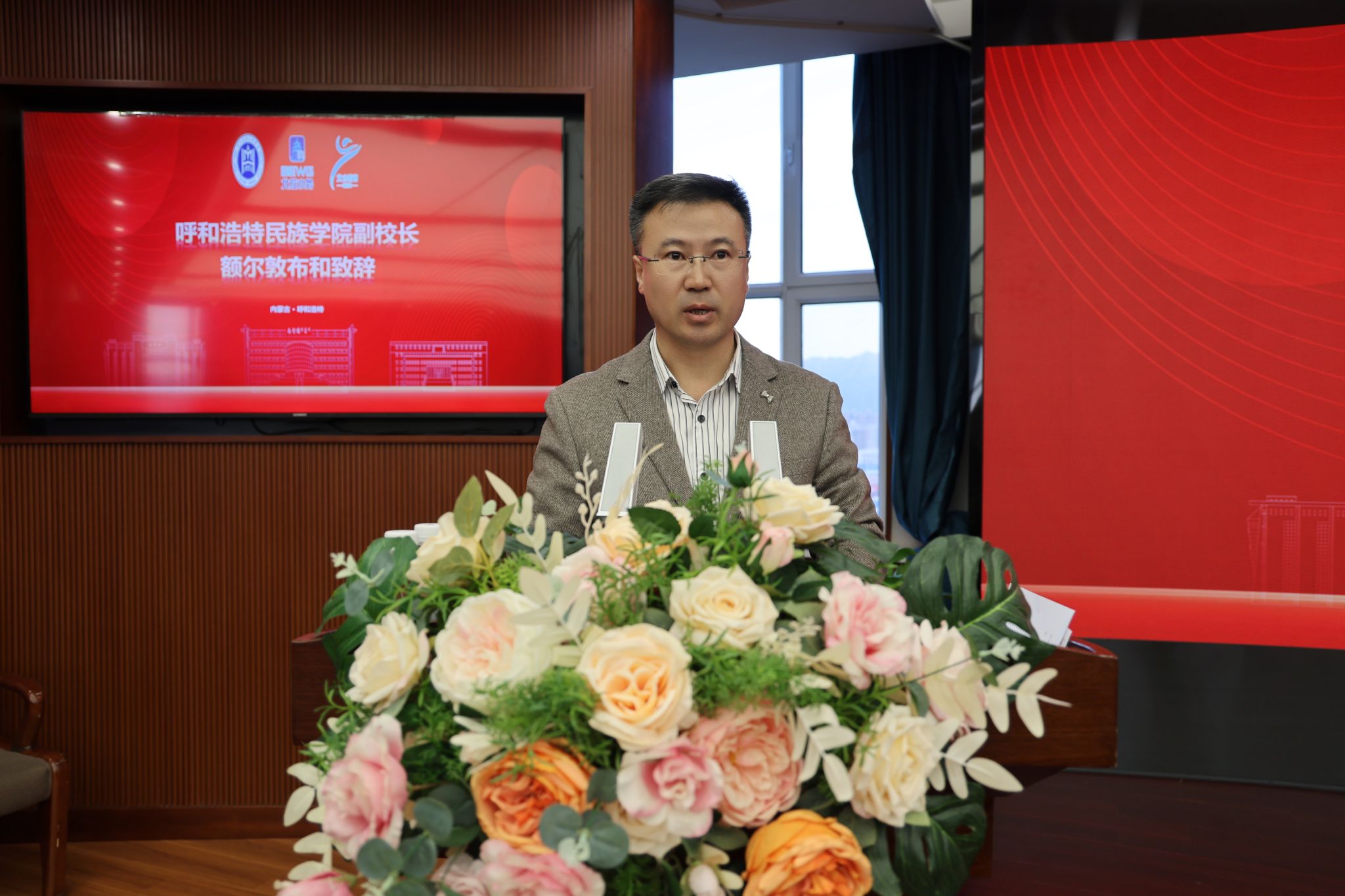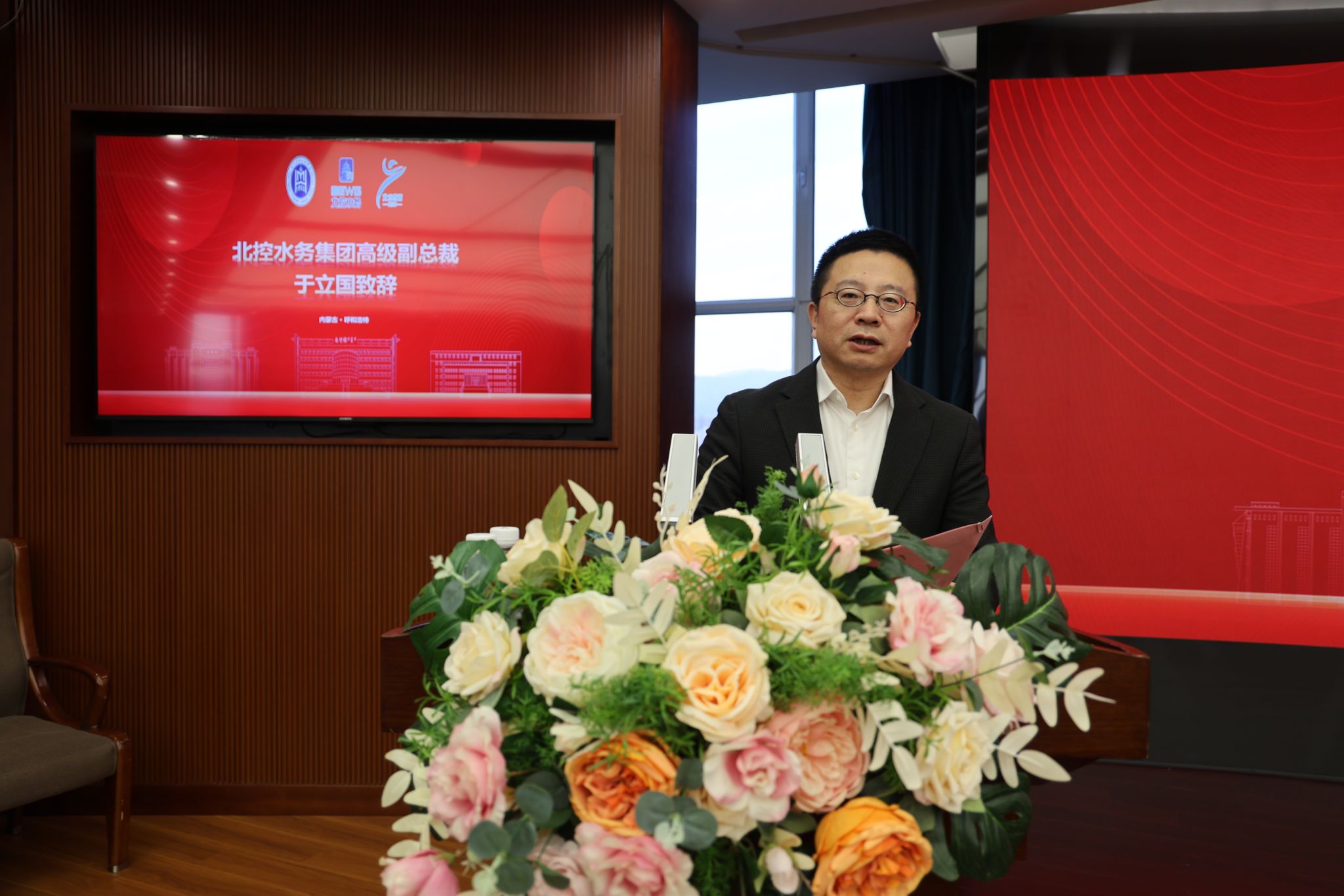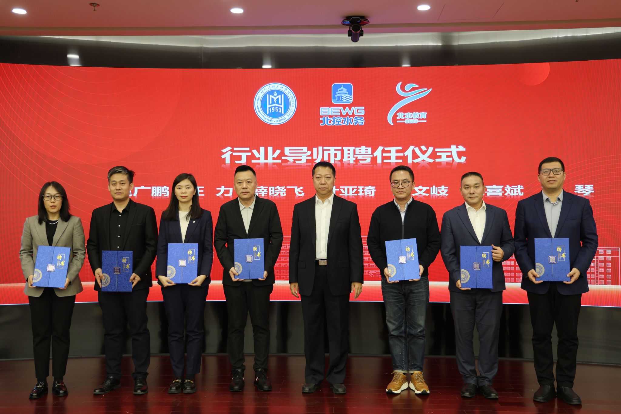 校党委书记刘九万,党委副书记格根哈斯,党委委员、副校长高喜天,党委委员、副校长额尔敦布和,党委委员、副校长双虎,北控水务集团高级副总裁于立国,北水教育中心总经理冀广鹏,北水云服科技有限公司总经理汪力,北控水务研究院院长、北水未来科技有限公司副总经理薛晓飞,运营服务中心总经理助理叶亚琦,北部大区人力资源总监王文岐,北部大区内蒙古业务区总经理殷喜斌,北部大区内蒙古业务区副总经理刘琴 ,北水教育中心产教融合中心总经理秦建明,北水教育中心学习创新中心副总经理孙梦澜出席成立仪式。