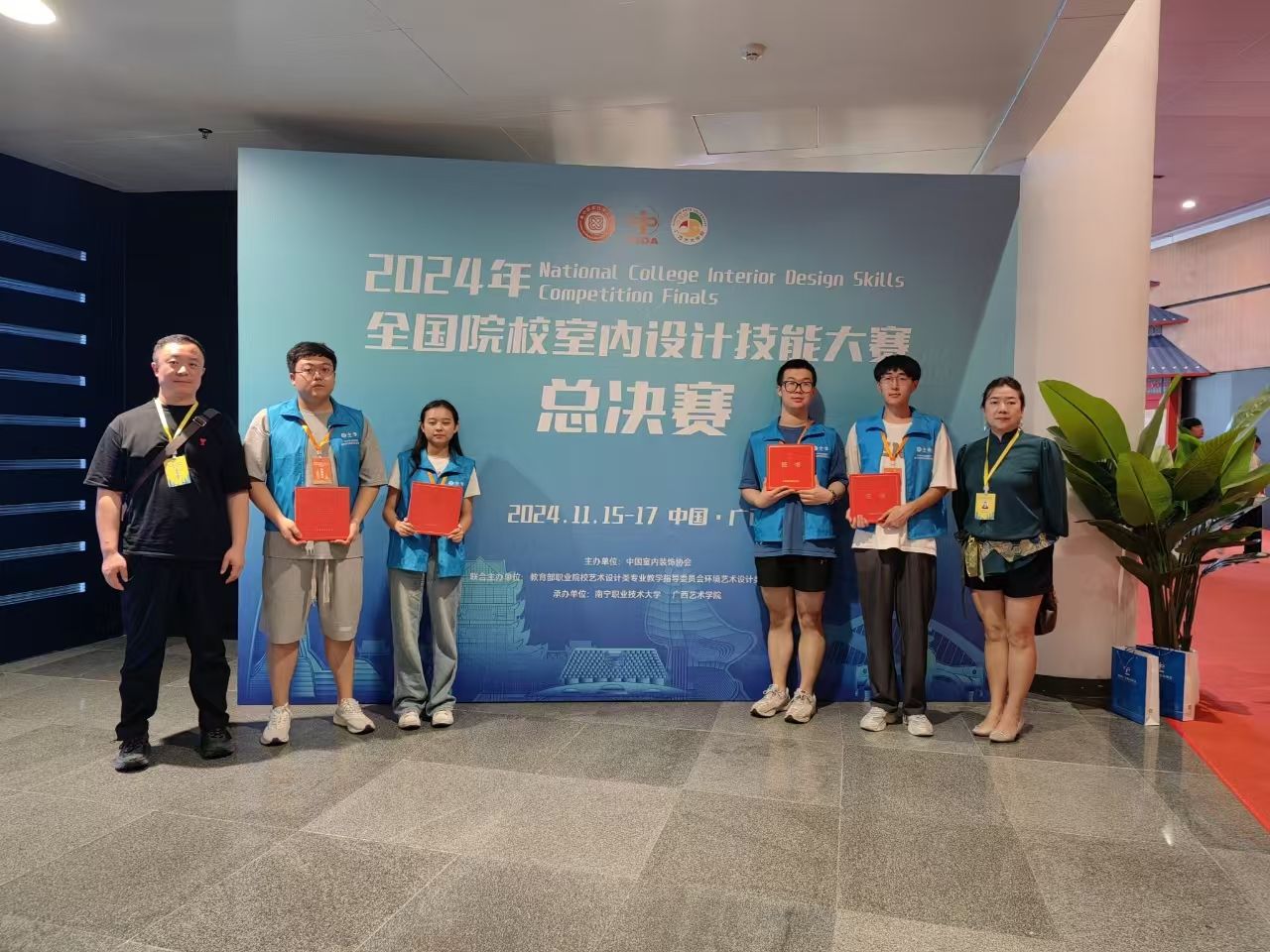 11月15日—18日,由中国室内装饰协会、教育部职业院校艺术设计类专业教学指导委员会、环境艺术设计类专业委员会组织的2024年全国院校室内设计技能大赛总决赛在广西壮族自治区南宁职业技术大学举办。Beat365美术与设计学院魏伟、伊丽亚两位教师指导的《绿动、悦读——咖啡书屋设计》(学生:苏春宝、王润楠)作品荣获全国院校本科组团体一等奖;陈苏丽、白萧天两位教师指导的《花语食咖——学生餐厅设计》作品(学生:刘顺阁、郭浩阳)荣获全国院校本科组团体三等奖,是此次比赛中唯一获奖的内蒙古自治区本科院校。