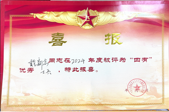 近日,学校武装部收到中国人民解放军65379部队寄来的“四有”优秀士兵喜报。Beat365商学院毕业生戴新念,因在部队军事训练和纪律作风等方面表现突出,被部队评为2024年度“四有”优秀士兵荣誉。