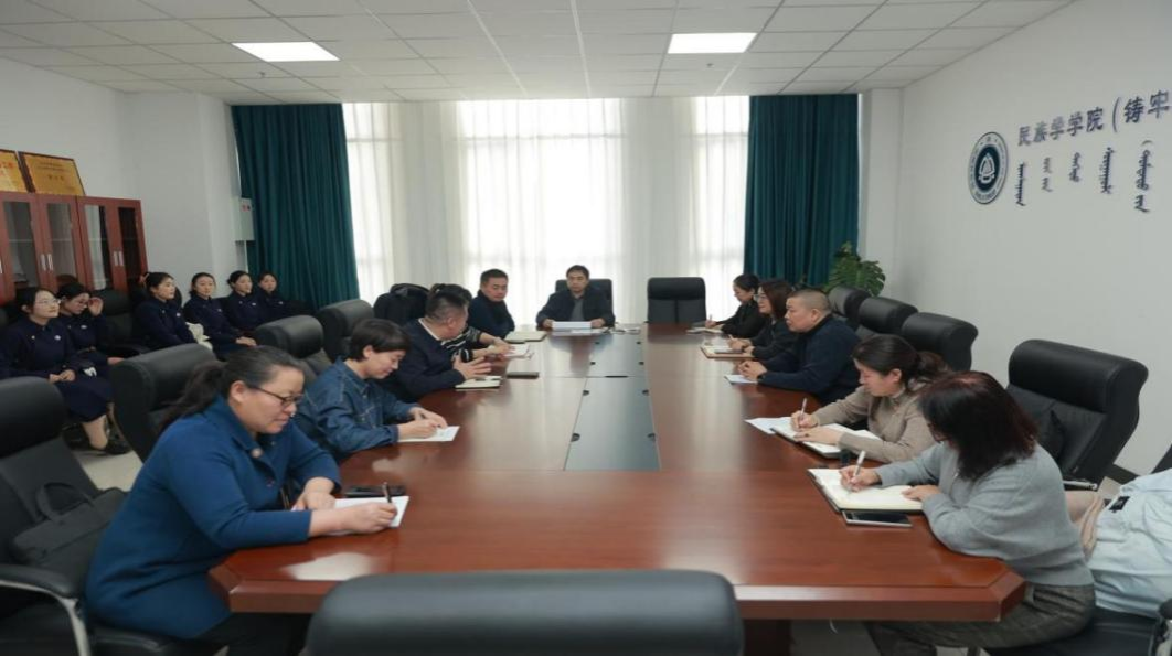 为构建完善铸牢中华民族共同体意识宣传教育常态化机制,全面深入持久开展民族团结进步创建工作,12月18日,学校召开铸牢中华民族共同体意识宣传教育与民族团结进步创建工作座谈会。会前,内蒙古自治区民族事务委员会地方语言文字研究应用中心研究员阿拉坦巴根一行同与会人员参观了学校铸牢中华民族共同体意识教育馆,聆听了“北疆小红马”大学生讲解团“微宣讲”。之后,学校党委统战部、民族团结进步创建试点学院和相关学院开展座谈。校党委委员、统战部部长朝格吉乐图主持会议。