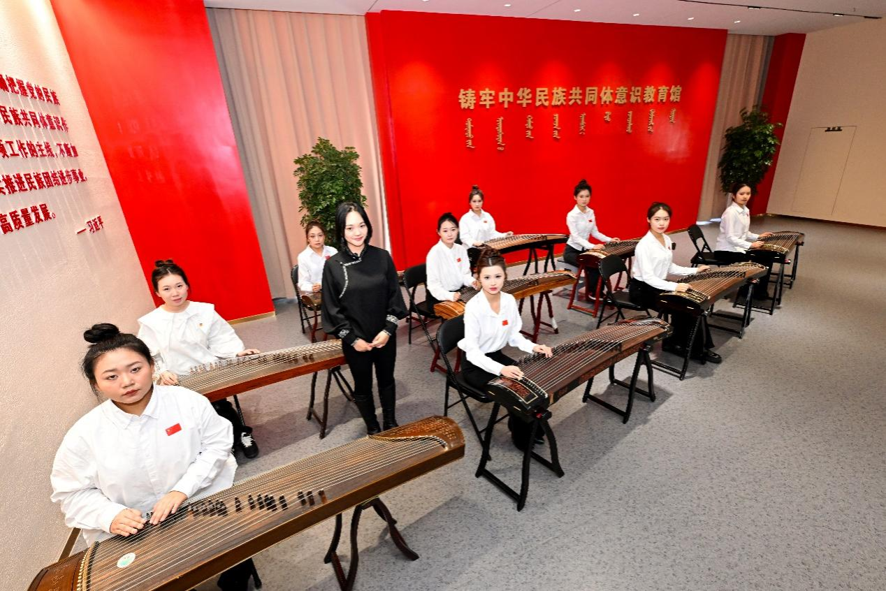 “馆演一体、馆教一体”融合,助推“五育并举:古筝实践教学成果展示活动”中,音乐与舞蹈学院师生深入践行铸牢中华民族共同体意识教育馆“馆教一体”、“馆研一体”、“馆创一体”、“馆演一体”创办理念,将古筝、马头琴等音乐课搬进场馆,通过实践教学展演的方式,让师生深入理解中华民族优秀传统文化的精髓,增强文化认同感,为弘扬中华优秀传统文化、铸牢中华民族共同体意识探索了新的实践路径。