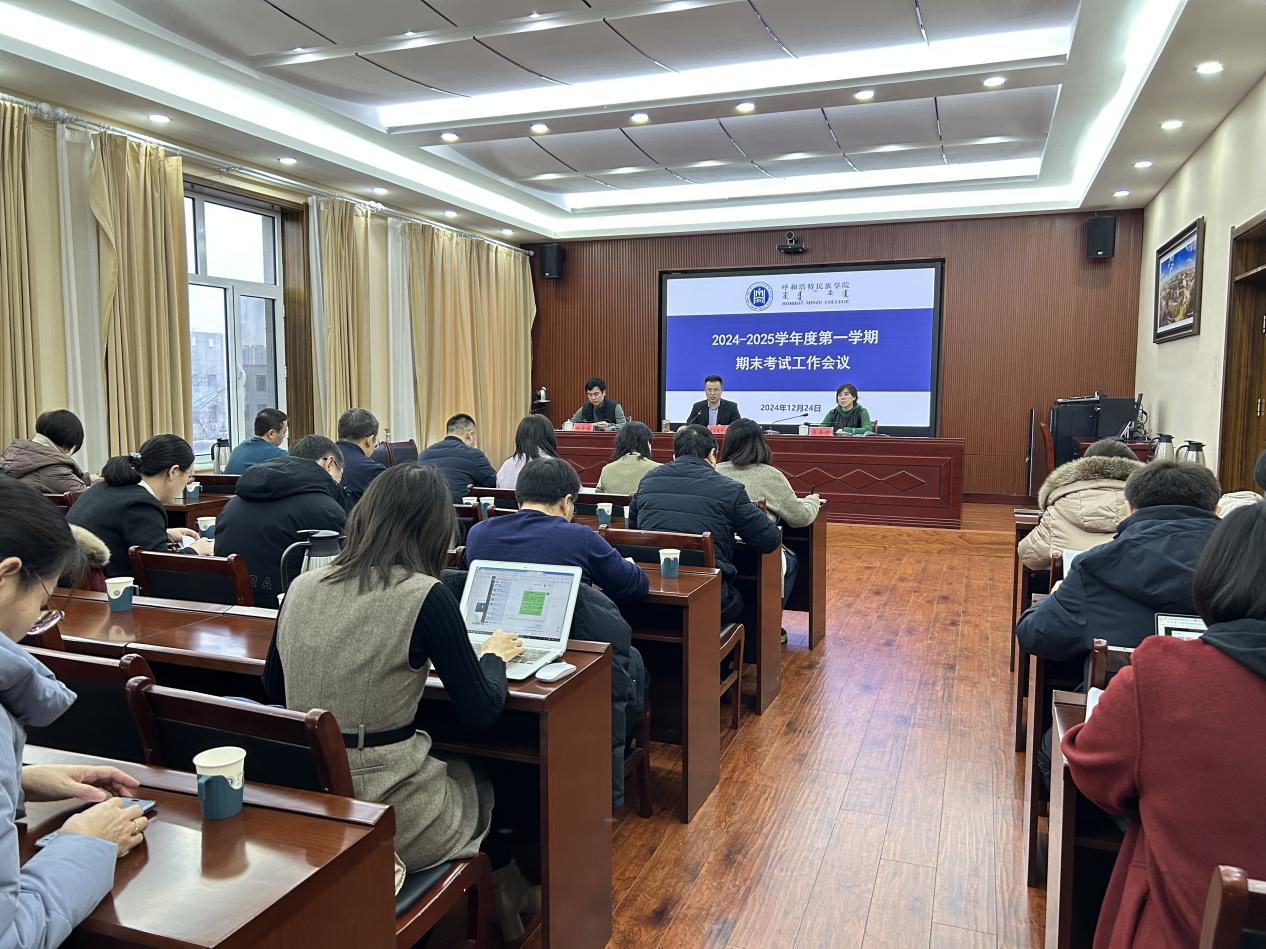 为规范期末考试秩序,营造公平公正、和谐有序的考试环境,学校于12月24日在办公楼四楼会议室召开了2024-2025学年度第一学期期末考试工作会议。校党委委员、副校长额尔敦布和主持会议并讲话。