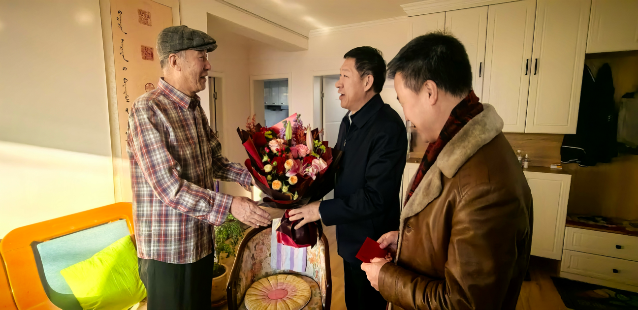 新春暖意至,岁寒情更浓。在农历蛇年新春佳节来临之际,1月21-23日,校党委书记刘九万,党委副书记格根哈斯,党委委员、纪委书记、监察专员王冬梅,党委委员、副校长高喜天、刘瑞鸿、额尔敦布和、双虎在党政办公室、组织部、宣传部、离退休人员工作处等有关部门负责同志陪同下深入离退休老领导、老干部、老党员家中走访慰问,送去节日的问候和新春的祝福。