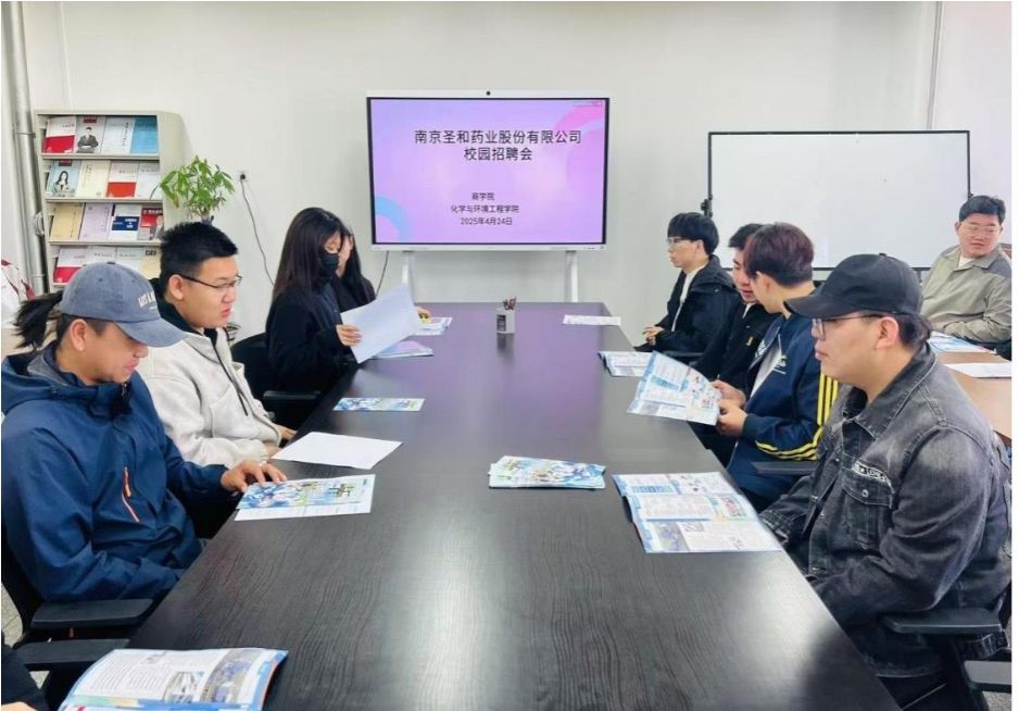 4月24日,商学院、化学与环境工程学院与南京圣和药业股份有限公司携手在尚智楼310室举办校园专场招聘会。招聘会以 “学科联动 精准育才 协同就业”为主题,吸引了众多毕业生参与,提供就业岗位10余个,岗位覆盖化工、营销等专业。校党委委员、副校长高喜天出席本次招聘会。