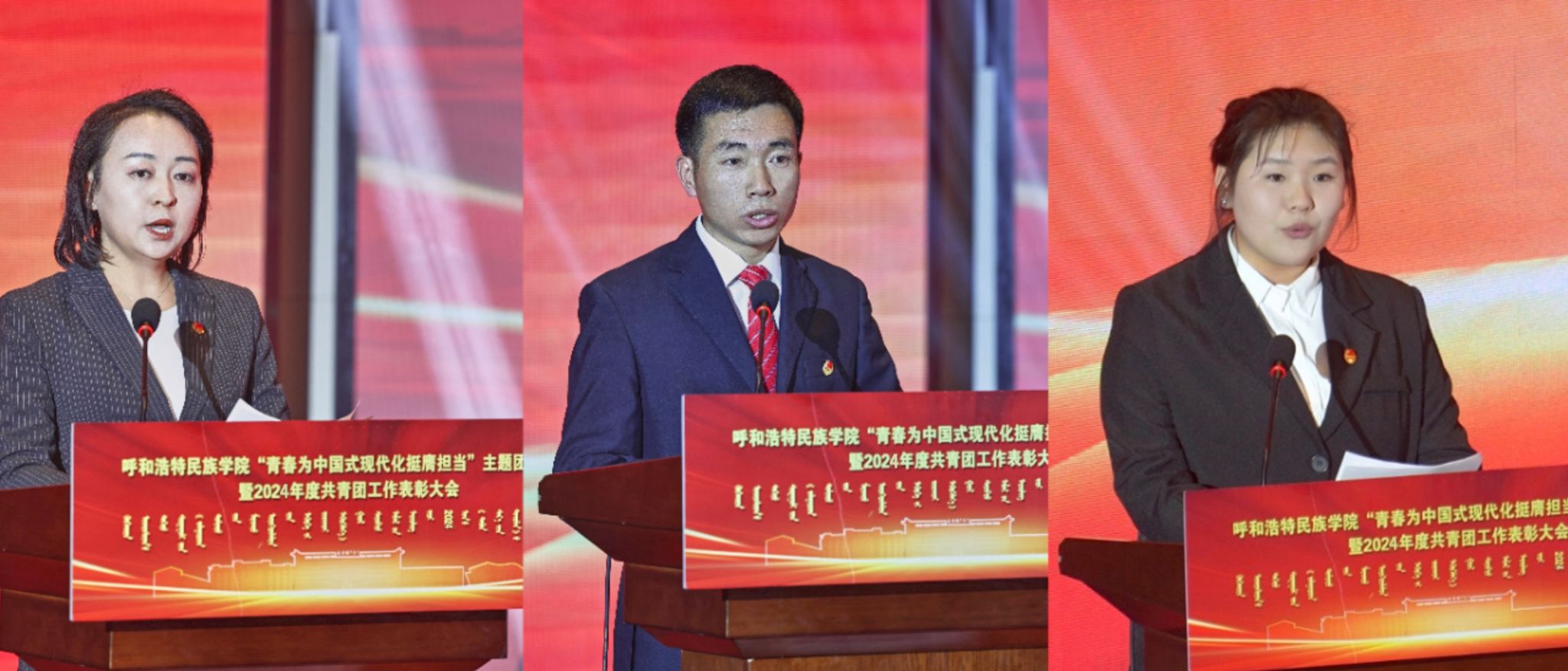 高喜天、刘瑞鸿、额尔敦布和分别为优秀共青团员代表颁奖