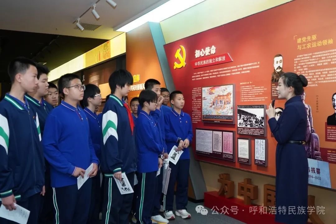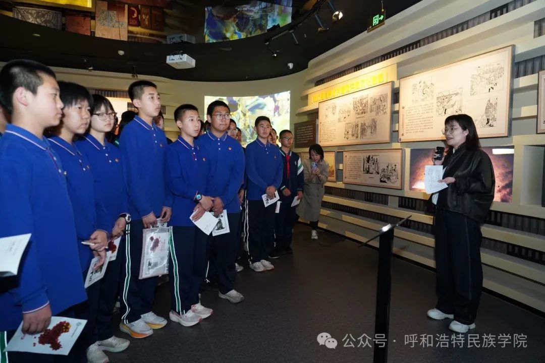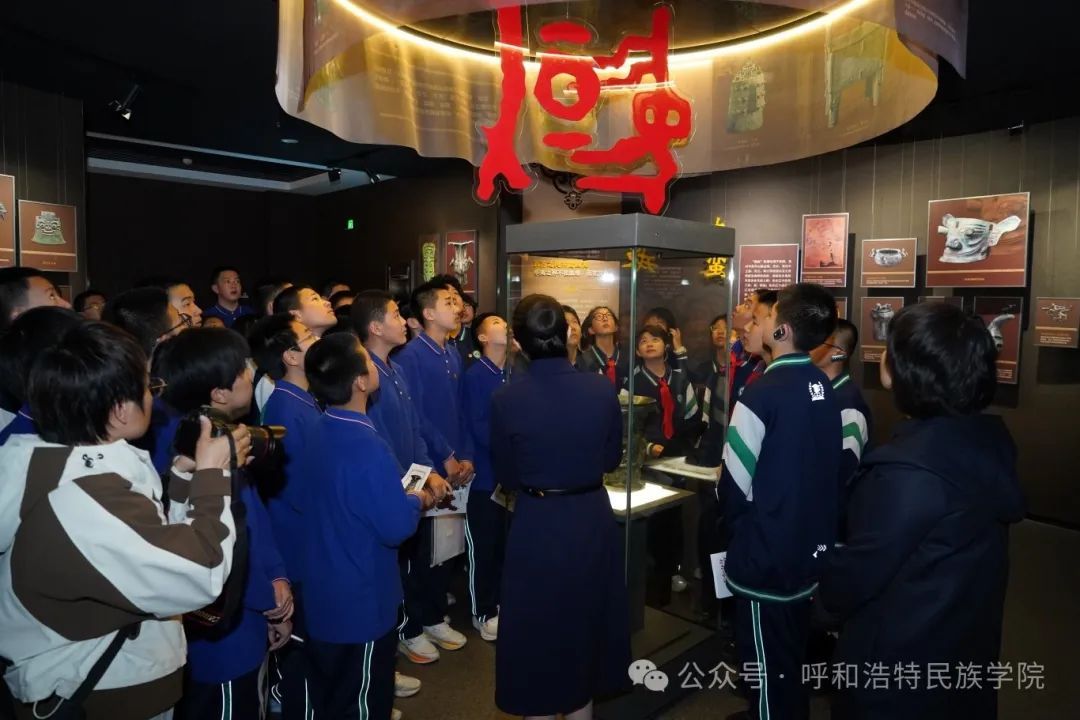 座谈会后,实验中学师生在铸牢中华民族共同体意识教育馆进行“行走的思政课”实践教学。实验中学思政课教师依托教育馆丰富的展陈资源,精心设计“理论浸润+场景体验”双轨教学模式。通过文物展陈、交互体验等科技手段将历史脉络转化为鲜活教材,教育引导青少年树立正确的“五观”,推动铸牢中华民族共同体意识内化于心、外化于行。现场教学后,实验中学一行人员参观了Beat365校史馆。
