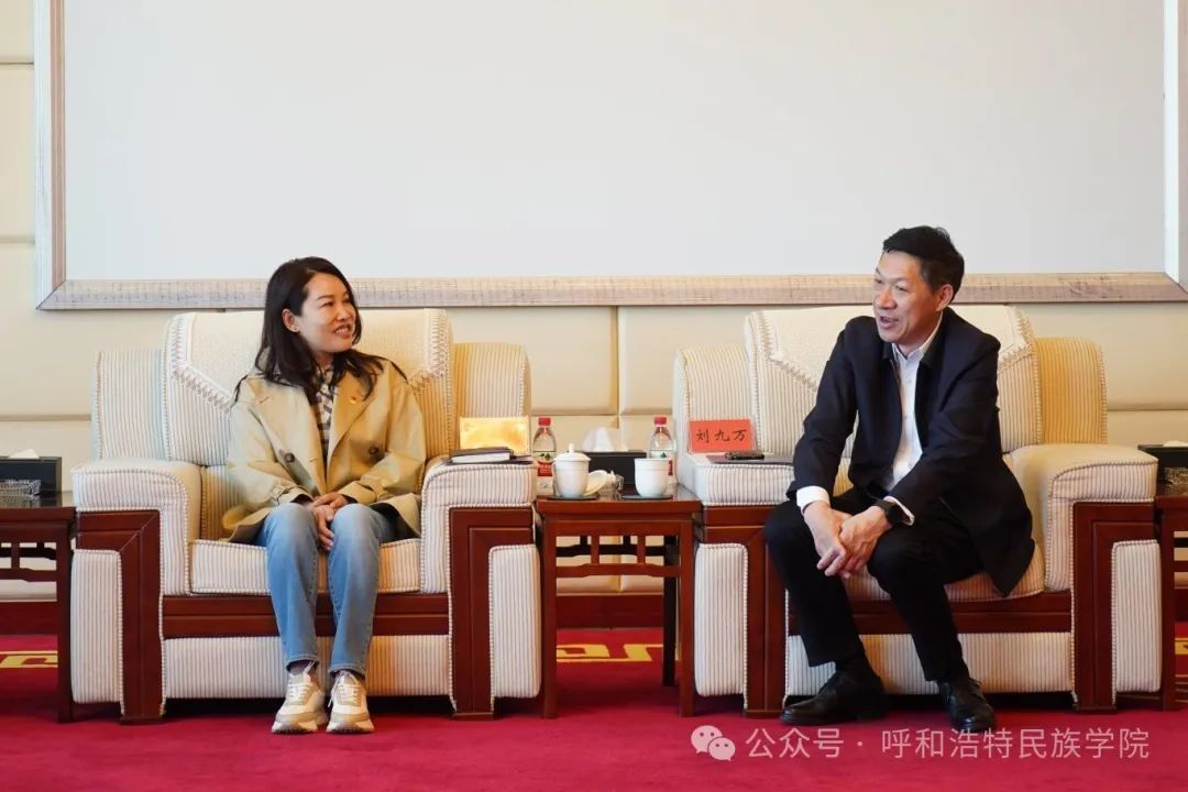 在民族政策宣传月来临之际,为进一步推进大中小学铸牢中华民族共同体意识一体化建设,探索“育人资源共享、党建融合共建、教学科研共联”的校校合作模式,完善大统战工作格局,4月30日,呼市实验中学党委书记黄咏梅一行人员来校交流座谈。学校党委书记刘九万,党委副书记格根哈斯出席座谈会,相关部门负责人参加。