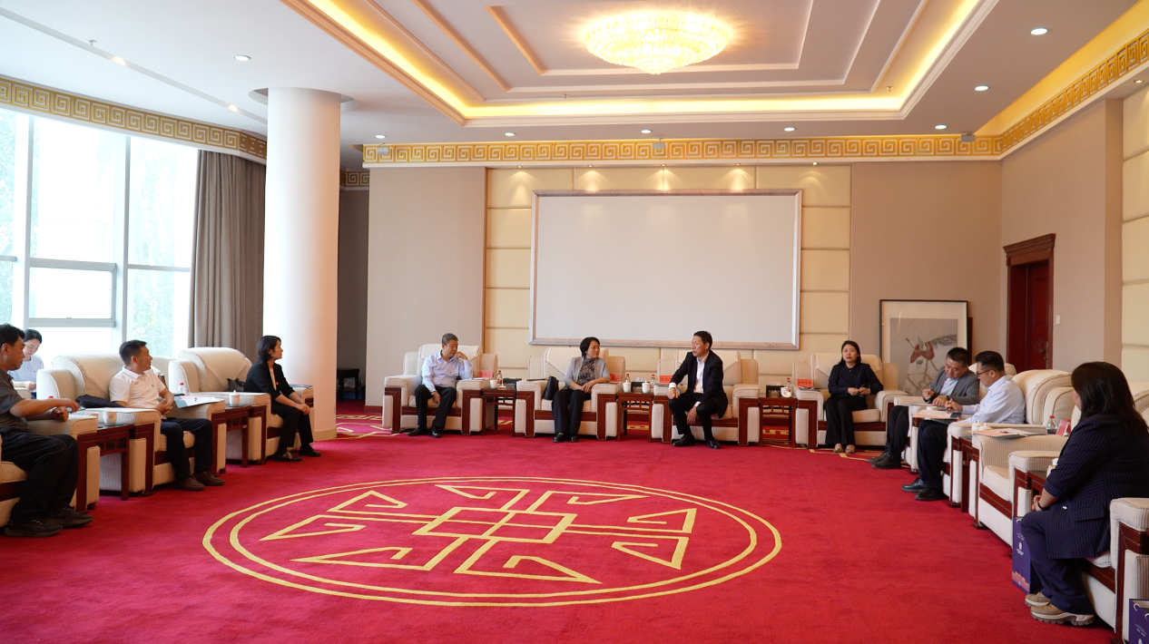 民族政策宣传月活动广泛开展期间,为全面贯彻铸牢中华民族共同体意识工作主线,进一步推进大中小学思政教育一体化建设,探索“育人资源共享、党建融合共建、教学科研共联”的校校合作模式,5月29日,呼和浩特市智能技术应用学校党委书记程莉莉,党委委员、副校长李彩庭一行来校交流座谈。学校党委书记刘九万,党委副书记格根哈斯出席座谈会。