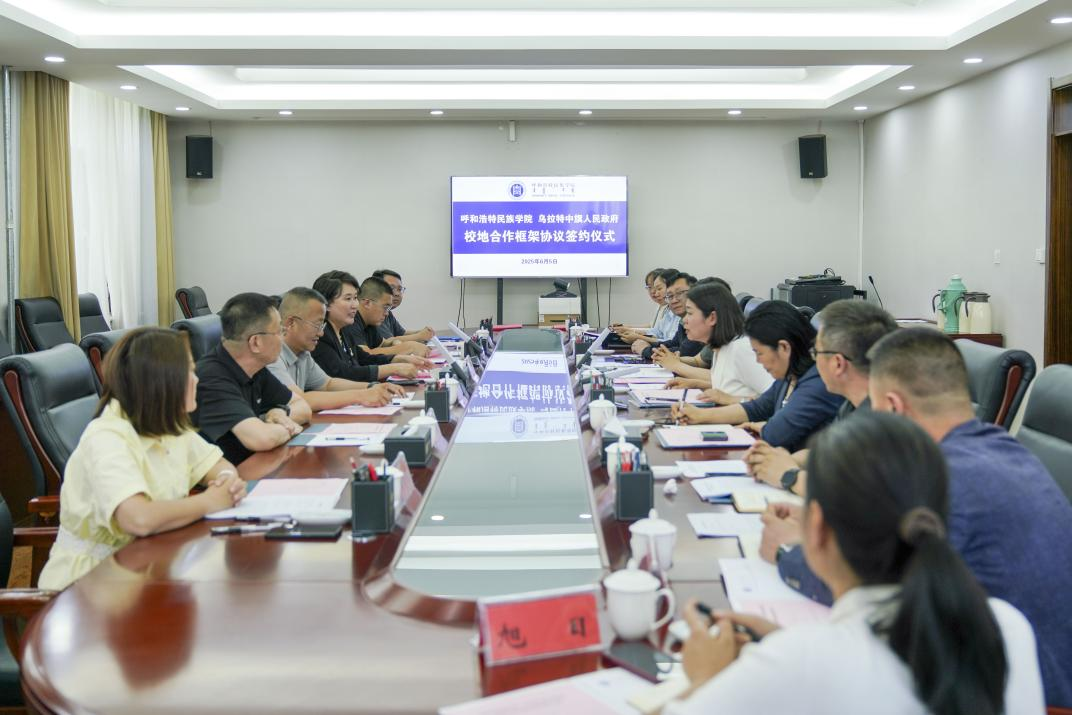 校党委委员、宣传部部长张海峰与乌日娜代表双方签订了校地合作框架协议。
