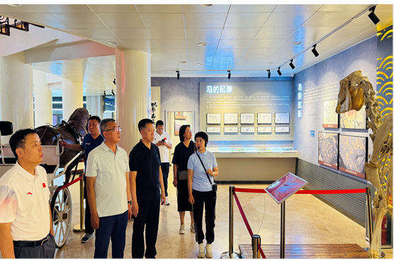 内蒙古自治区社会体育服务中心主任郝占热情接待了调研组一行。期间,调研组参观了马文化展示馆。通过工作人员的讲解,调研组沉浸式感受了浓郁深厚的马文化氛围,深入了解中心在文化传承、社会体育推广与文旅融合发展等方面取得的成果。