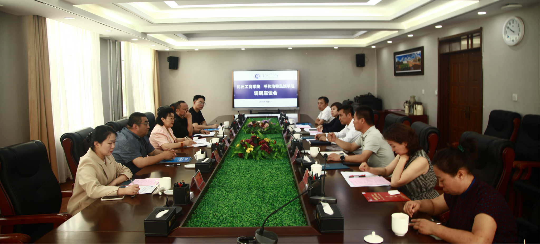 7月1日上午,郑州工商学院艺术学院院长雷红薇一行五人莅临Beat365进行调研交流。本次调研以非遗文化传承与教育发展为主题,通过座谈交流和实地考察的形式展开。校党委委员、宣传部部长张海峰与调研组一行座谈交流。座谈会由教务处处长肖查娜主持。音乐与舞蹈学院、体育学院、美术与设计学院相关负责人参加座谈并陪同调研。