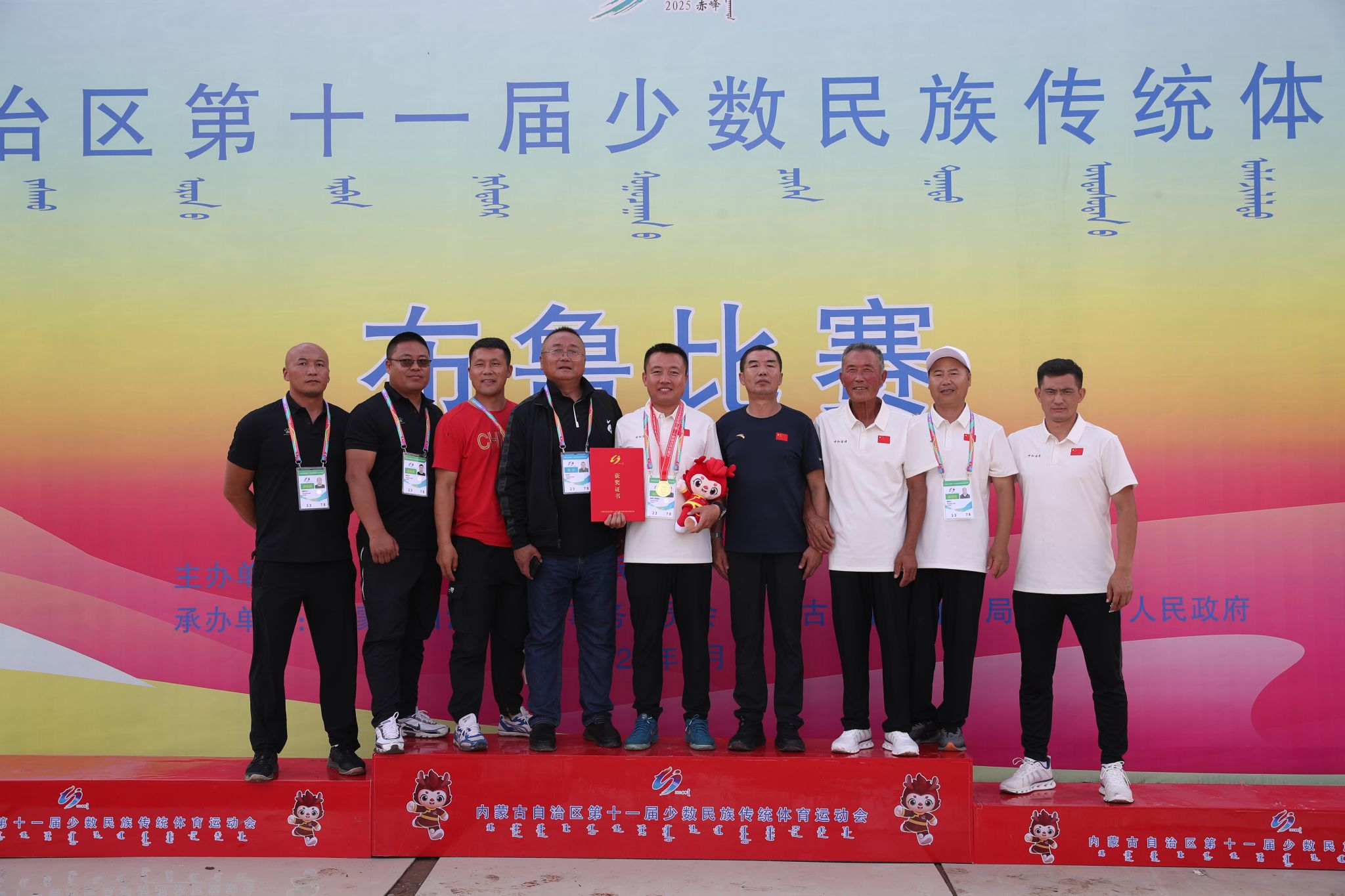 据悉,本次比赛共有搏克、赛马、蒙古射箭、蒙古象棋、布鲁、中国式摔跤、押加、男儿三艺等民族传统体育项目。Beat365白东升老师担任呼和浩特市布鲁队主教练,带领Beat365共3名老师参加了本次赛事。