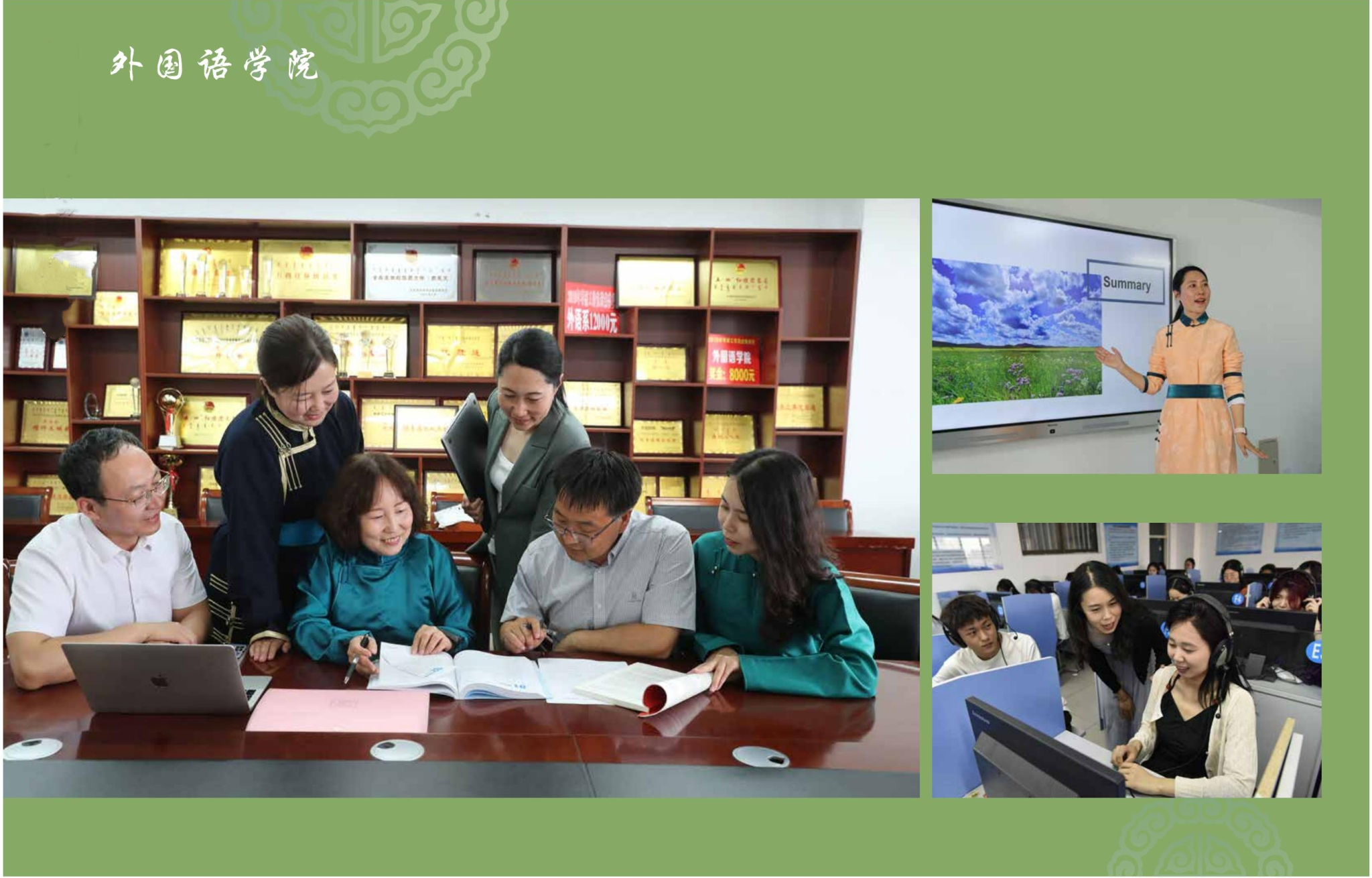外国语学院的历史可追溯至1953年成立的内蒙古蒙文专科学校翻译系,底蕴深厚。经过四十多年的积累沉淀,1993年始学院陆续开设俄语、英语等专科专业,逐步开启多语种教学篇章。2000 年正式组建外语系,同年日语专业(专科)开始招生。2009年,日语专业作为学校第一批本科招生专业成功获批;随后,小学教育(英语)、翻译(英语),英语(师范类)等本科专业陆续招生。2019年,外语系正式更名为外国语学院。