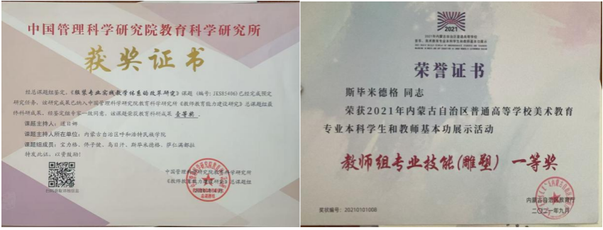美术教育与思政教育相结合,开展课程思政教育,通过美术创作和教学成果展示,探索以美育人、以美化人、以美培元新途径,培养学生社会责任感和爱国情怀取得了较好成效。立足民族地区特色优势,重点培育特色专业,为民族地区和其他少数民族地区培养了5000余名优秀毕业生。与蒙古国国立教育大学、造型艺术学院,中央民族大学等国内外大学建立学科建设、科学研究、人才培养合作交流关系,与北京东方智业文化发展有限责任公司签署(3+1)模式人才培养协议,与巴彦淖尔市乌拉特中旗签署协同育人合作框架协议,为人才培养创新发展搭建交流合作平台取得了较好的成效。近五年,毕业生国内外高校攻读硕士 42 人,博士 4 人;教师在省级以上展览参展和指导学生参展 338 人次,其中获奖 63 人次。采取就业服务包联帮扶制度,开展访企拓岗工作拓展就业渠道,签署就业实习实训基地 20 余家,应届毕业生就业率显著提升。2025 年初次就业率 86.49%。