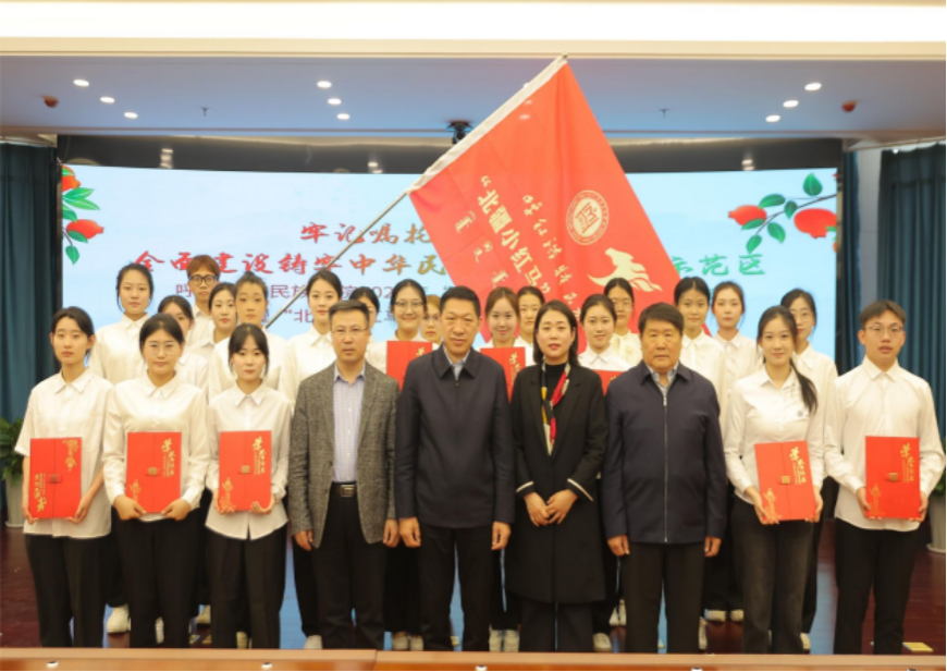 打造品牌团队。组建“北疆小红马”大学生讲解团,累计接待两馆两廊参观团525个,近4万人次来访;团队先后入选2024年全国大学生沂蒙精神志愿宣讲团、呼和浩特市民委“青城融讲”铸牢中华民族共同体意识讲解团、新城区民委铸牢中华民族共同体意识宣讲团,多次参与自治区民委、呼和浩特市民委大型宣讲活动。讲解团创新采用“讲解+演绎”模式,将民族团结进步故事与沂蒙精神带入中小学、企业及乡村振兴帮扶点;通过“大手拉小手”培养红领巾讲解员,推动思政教育在不同学段的内容衔接与协同育人。团队“课本剧里的红色北疆”创新项目,在学校“北疆文化创新大赛”中荣获特等奖,将国家通用语言文字推广与思政教育有效融合。