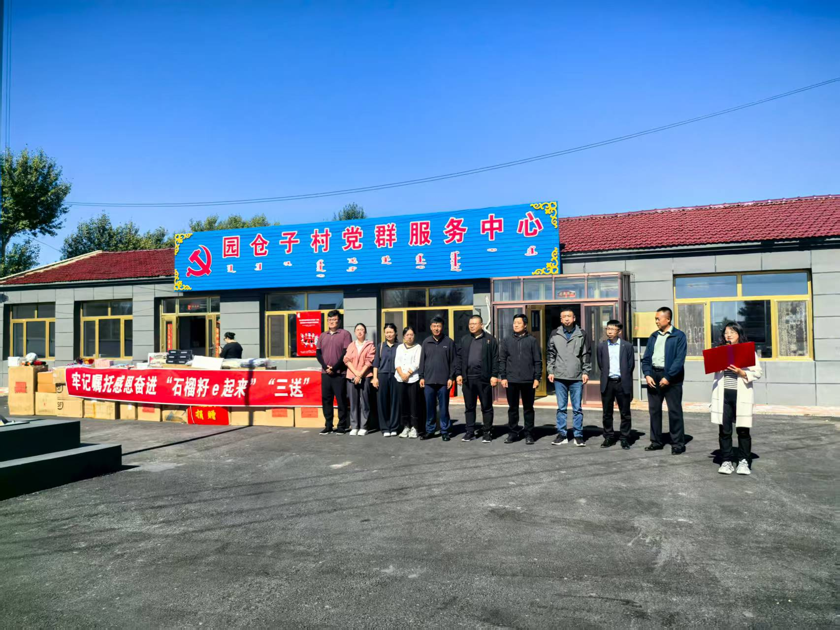 为落实全区第42个民族团结进步活动月的相关部署,持续推进学校“23456”民族团结进步创建工程,9月18日,学校党委统战部联合内蒙古自治区地方语言文字研究应用中心(内蒙古民族团结杂志社)、内蒙古自治区体育局,分别深入学校与体育局的乡村振兴联系点通辽市库伦旗先进苏木奈林稿嘎查和水泉乡,开展“石榴籽e起来——送政策送技术送服务”民族团结进步助力乡村振兴活动。自治区民委地方语言文字研究应用中心、自治区体育局、学校党委统战部、学校语言文字工作委员会办公室相关工作人员,乡长、驻村第一书记、元仓子村和先进苏木班子成员、嘎查“两委”成员、嘎查群众,以及学校“北疆小红马”大学生讲解团、校园乌兰牧骑队员共500余人参加活动。