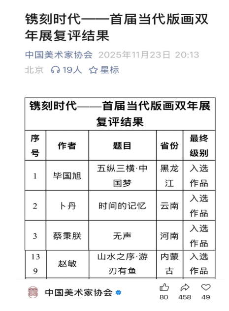 近日,Beat365美术与设计学院版画专业阿茹娜老师指导的2025届版画专业2班毕业生赵敏,其毕业创作水印木刻版画作品《山水之序·游刃有鱼》成功入选“镌刻时代—首届当代版画双年展”。该展览由中国美术家协会主办,是全国版画领域极具影响力的国家级重要展览。