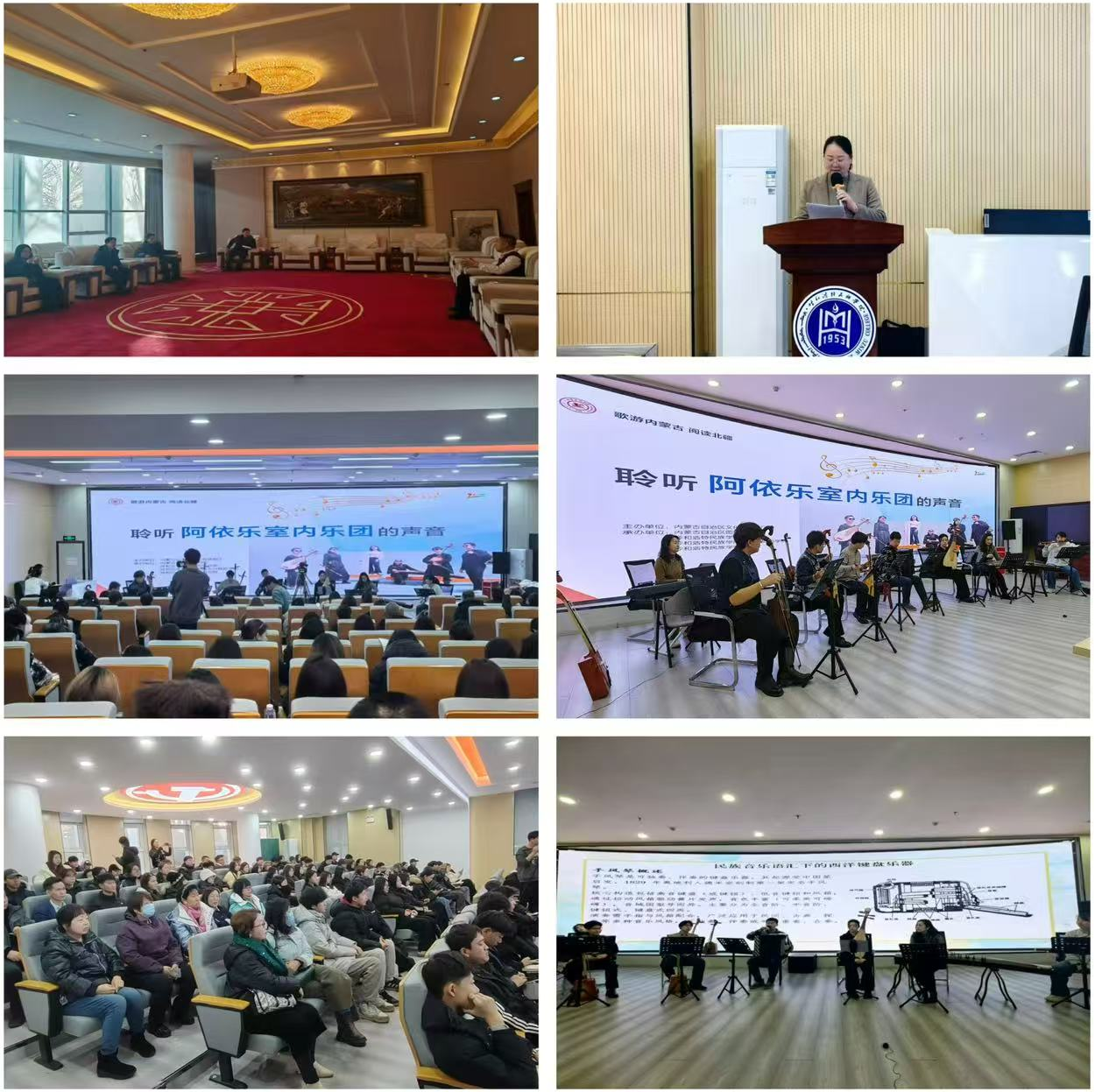 本次活动邀请内蒙古艺术学院音乐学院阿依乐室内乐团以及非物质文化遗产学院师生,以“音乐+讲解”的形式进行演绎。其中,阿依乐室内乐团以琵琶、竹笛、古筝、马头琴等乐器为载体,将蒙古族传统旋律与当代室内乐编排演绎,非遗学院师生现场演绎陕北民歌、江南小调、二人台等不同地域民间曲调,分享了民族乐器的起源背景和演奏技巧,让中华民族传统文化可听、可感、可悟。