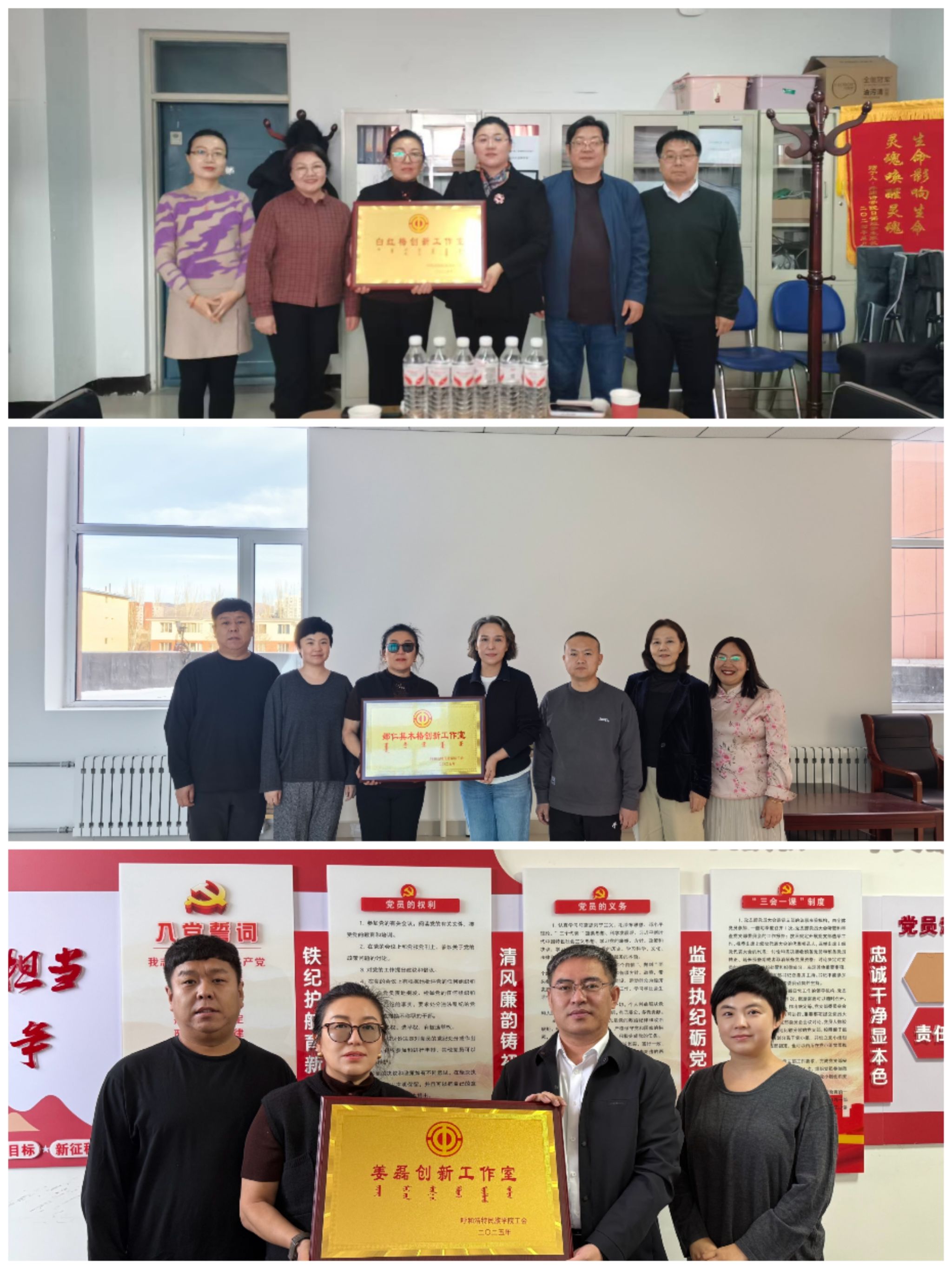 校工会参会人员共同为三个创新工作室揭牌,标志着学校在教学、管理、服务领域的创新实践迈上新台阶、开启新篇章。