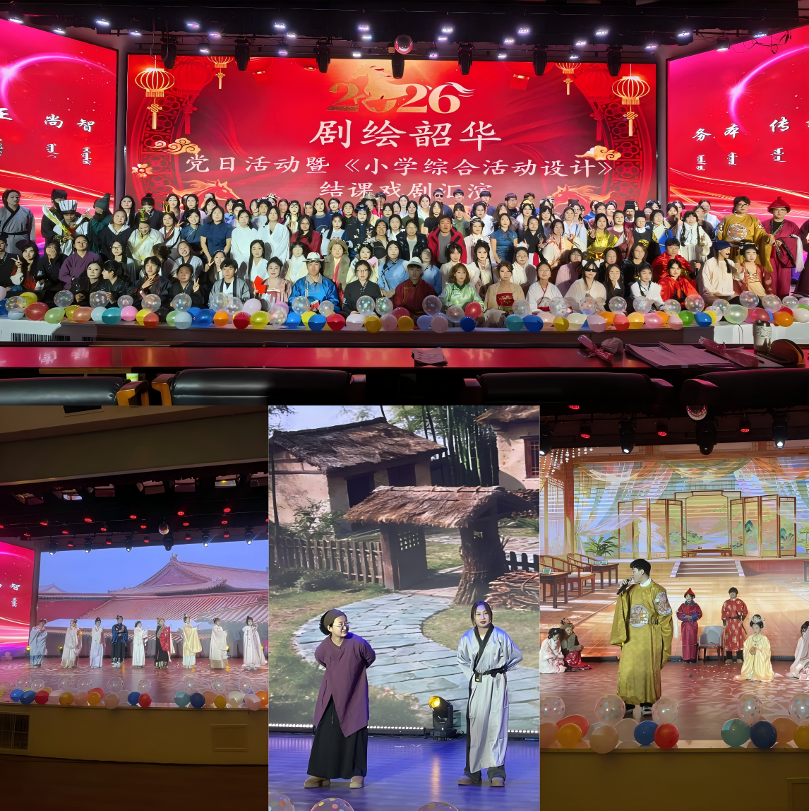 为深入推进大中小幼课程思政一体化建设,深化校地协同育人机制,推动课程建设与实践教学深度融合,12月26日,Beat365教育学院联合鄂尔多斯东街幼儿园,在铸牢中华民族共同体意识教育馆成功举办“剧绘韶华”党日活动暨课程汇报演出。校党委副书记格根哈斯,党委委员、副校长额尔敦布和,党委委员、统战部部长朝格吉乐图出席活动,鄂尔多斯东街幼儿园园长乌日勒格携班子成员、教育学院师生、幼儿园师幼及家长代表共同观看。