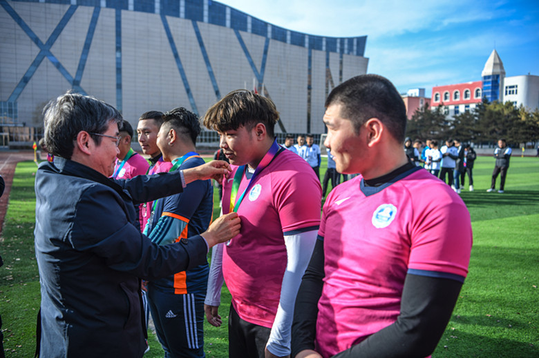 校党委委员、副校长阿拉坦仓为亚军队员颁发奖牌