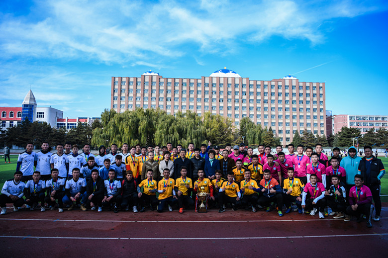 本届“白马杯”足球赛,各二级学院积极组织参赛,历经一个半月的角逐,经过37场的赛事比拼,最终由经济管理学院和新闻传媒学院突出重围,经受住小组赛和淘汰赛的重重考验,站在了决赛现场。随着哨声的响起,球员们迅速进入了状态。比赛过程精彩纷呈,既有短传渗透、整体推进,又有防守反击、长传冲吊。赛场上,球员们激战正酣,你拼我抢;赛场外,观众们呐喊助威,心潮澎湃,校园里充满了青春和活力。经过90分钟激战,最终经济管理学院以5:1战胜了新闻传媒学院,夺得了本届“白马杯”足球比赛的冠军,新闻传媒学院获得亚军,体育学院获得季军。校党委副书记胡春梅,党委委员、副校长阿拉坦仓,团委副书记苏伦高娃,体育学院副院长乌日根牧仁为冠亚季军球队颁发了奖牌和奖杯。