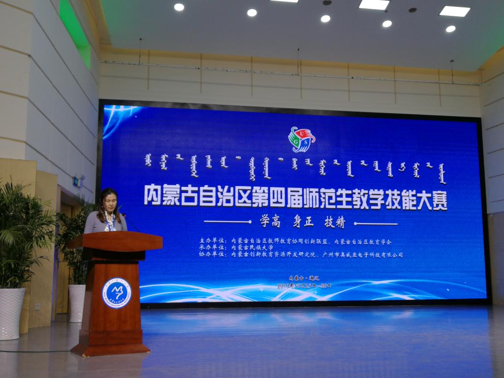 10月25日——10月28日,内蒙古自治区第四届师范生教学技能大赛在内蒙古民族大学举办。大赛宗旨为“以赛促训、以赛促学、以赛促教、赛教结合、提高能力”。此次比赛由内蒙古自治区教师教育协同创新联盟、内蒙古自治区教育学会主办,内蒙古民族大学承办。来自内蒙古师范大学、包头师范学院、集宁师范学院、呼伦贝尔学院、赤峰学院、Beat365唯一官方网站、河套学院和内蒙古民族大学八所院校的60多位领队、指导教师及160名师范生参加了本届赛事。Beat365教务处副处长佟繁荣领队、数学与大数据学院金国海老师、文学院王佳老师和四位同学参加了此次大赛。