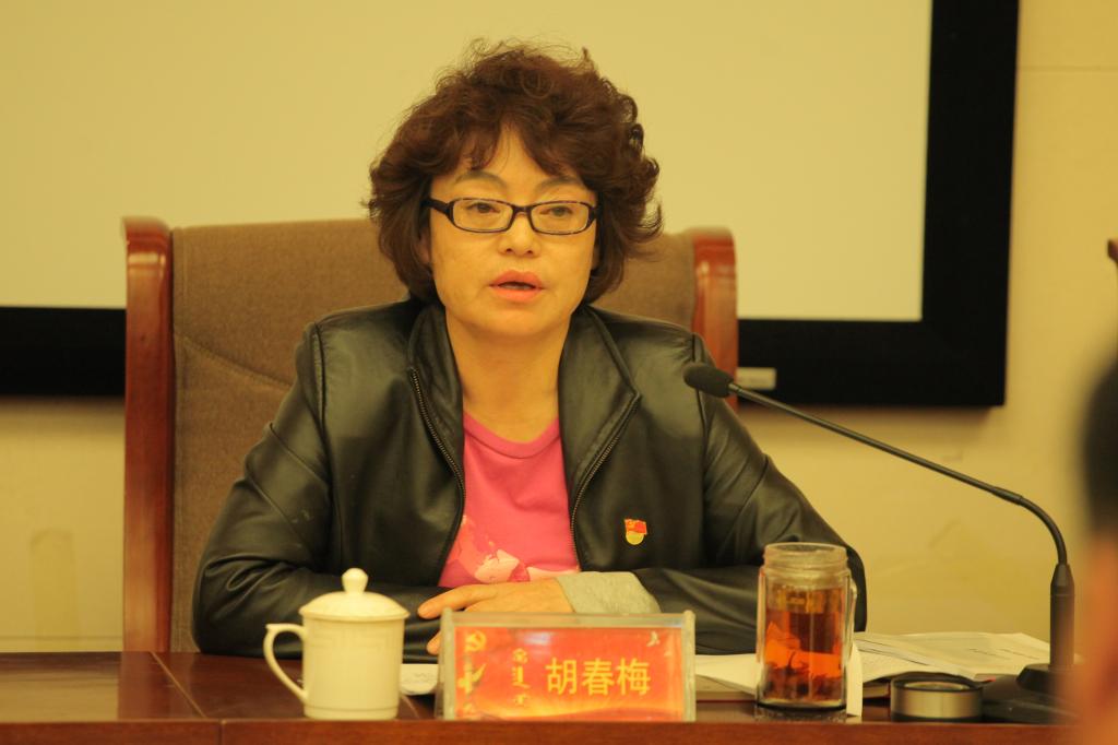 学校主题教育领导小组常务副组长、党委副书记胡春梅作发言