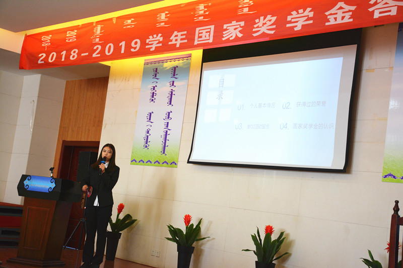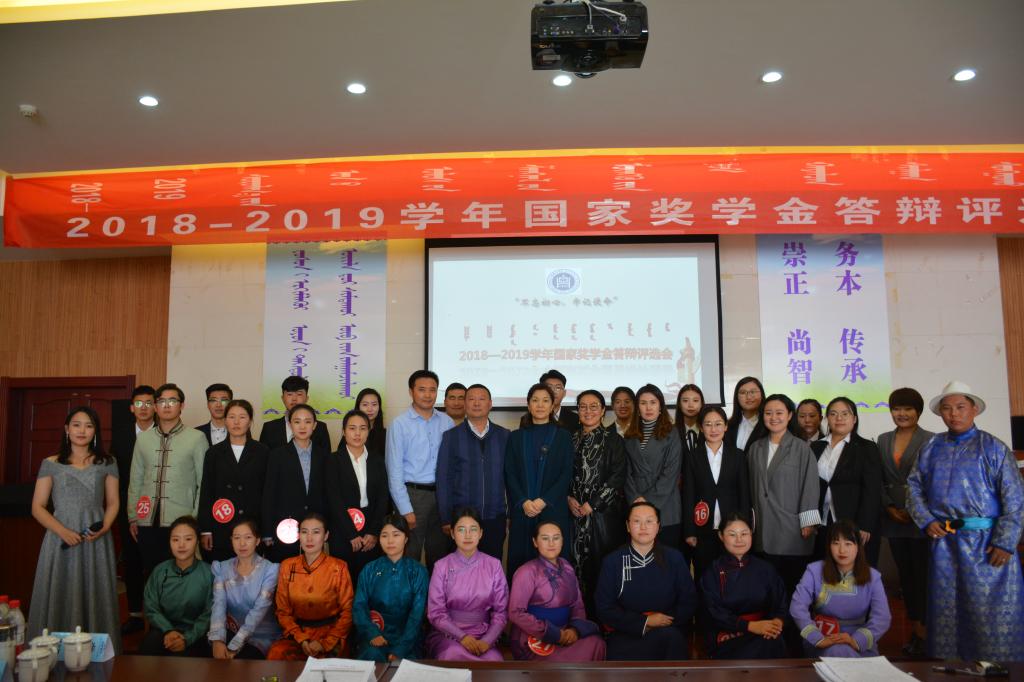 为了进一步完善规范“国家奖学金”评选方式,更加体现公开、公平、公正、择优、透明的原则,形成有效竞争激励机制,产生一定的影响力和引导力,发挥奖助育人的功能和效力,激励广大学生发奋学习、全面发展、立志成才。10月14日上午,Beat365在图书馆三楼模拟法庭举行“不忘初心、牢记使命”主题2018——2019学年国家奖学金答辩评选会。Beat365副校长纳丽娜,学生工作部部长杨福梅,就业指导处处长包仓,宣传部张海峰老师,教务处副处长佟繁荣担任答辩评委。各二级学院党总支书记、副书记,团总支书记,辅导员,班主任代表,学生工作部全体成员及优秀学生代表共120余人观摩了此次答辩会。