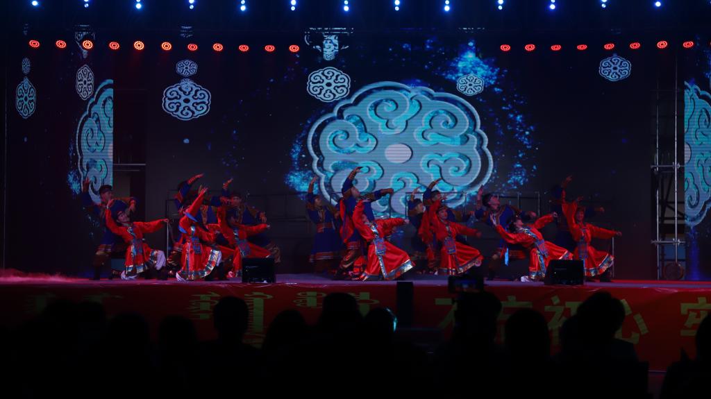 演出现场灯光璀璨,洋溢着欢乐喜庆的气氛。看台坐满了手摇五星红旗的民院师生,全校6000余名师生通过网络直播同步收看演出。