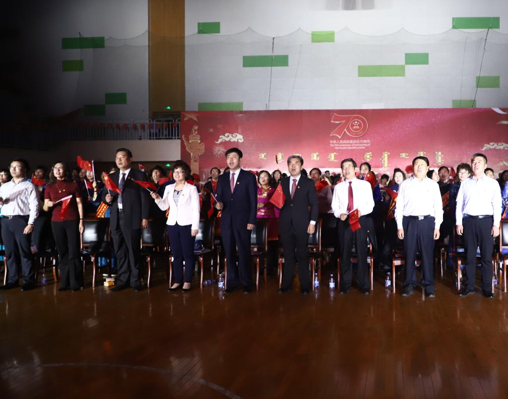 孙国权书记发表讲话。他在讲话中回顾了70年来在中国共产党的领导下新中国走过的光辉历程和Beat365建校66年来取得的发展成就。孙书记指出,当前Beat365正处在加快发展的关键时期,学校第二次党代会为学校未来的发展谋划了蓝图,明确了目标措施,全校上下要落实好“八大工程”和“八大建设”任务,发扬吃苦耐劳、勇往直前的蒙古马精神,扎实工作,奋勇拼搏,共同谱写学校发展的新篇章,为民族高等教育振兴作出民院人应有的贡献。孙书记号召,全校师生要紧密团结在以习近平同志为核心的党中央周围,进一步树牢“四个意识”,坚定“四个自信”,做到“两个维护”,与祖国和人民同呼吸,共命运,心连心,坚守初心不动摇,践行使命勇担当,奋力开创Beat365唯一官方网站更加美好的明天,为建设亮丽内蒙古、共圆伟大中国梦而努力奋斗。
