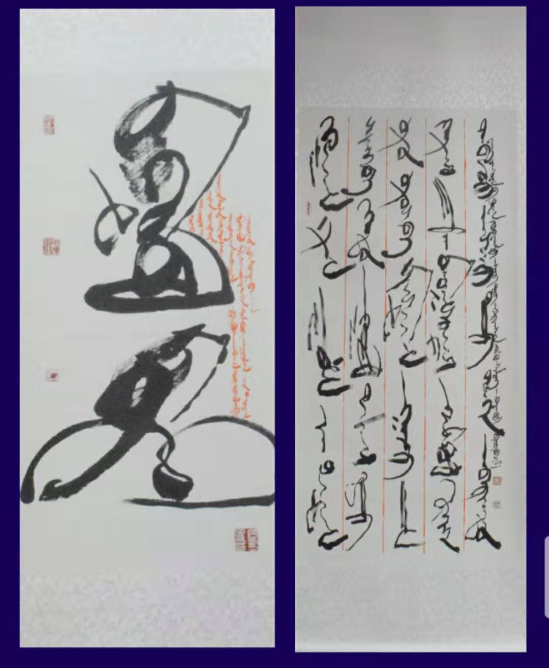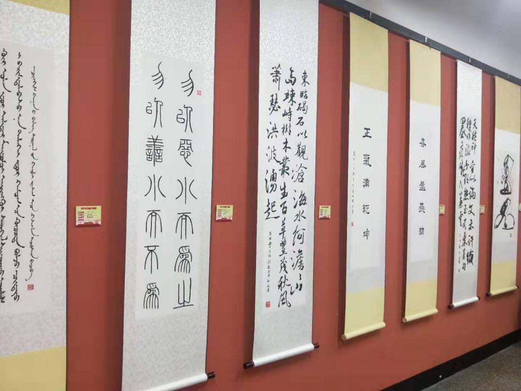 此次书画展面向全校师生征集蒙汉文书法、油画、国画、版画、水彩画等近百件书画作品,经评审组筛选出52幅优秀作品进行展出。