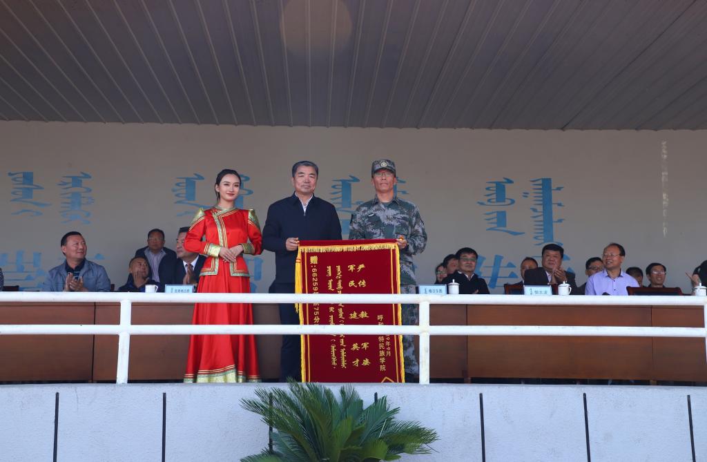最后,学校党委副书记、校长格日乐图同志向承训部队带队领导赠送了锦旗。