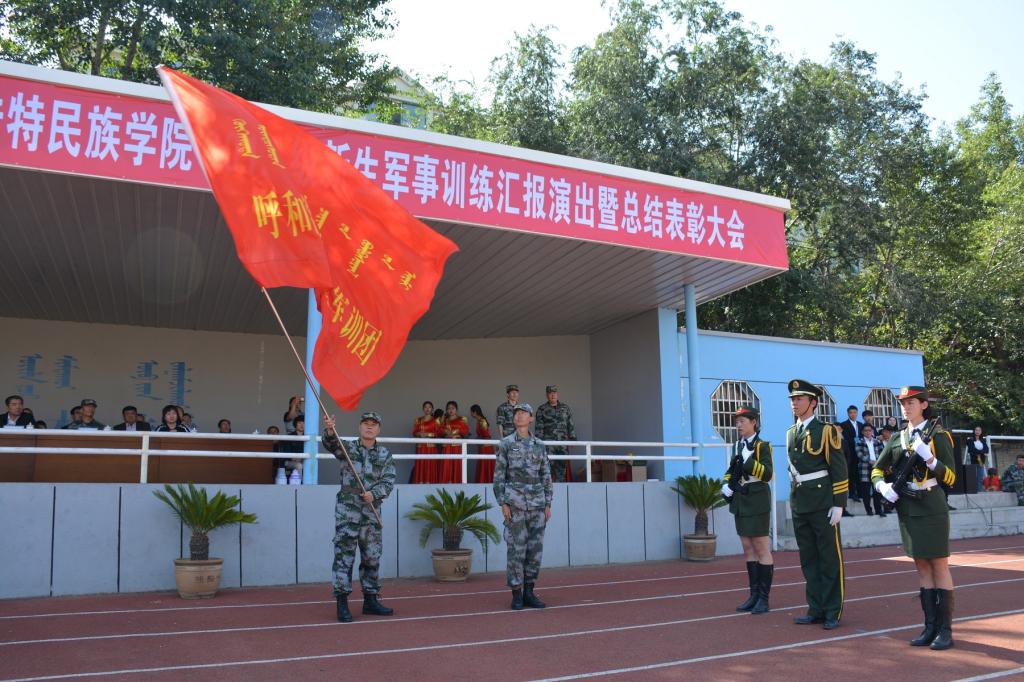 贺希格吉雅副校长作总结讲话。贺副校长首先向在军训中洒下辛勤汗水、做出突出贡献的承训部队全体教官和工作人员表示衷心感谢,对全体参训同学表示诚挚的问侯和热烈的祝贺。贺副校长指出,军训是一个成长的阶梯,是一段难忘的人生经历,通过军训同学们不仅增强了体质,磨练了意志,练就了优良的品质,更培养了团结协作的精神和纪律观念。通过军训和一系列教育活动,增进了师生之间的了解和情感的沟通,形成了一种积极向上的良好学风和集体凝聚力。贺副校长希望同学们做到以下几点,一是把军训中养成的军人作风保持下去,带到学习和生活中,高标准,严要求,规范自己的言行;二是发扬部队的优良传统和作风,严于律己,遵守各项规章制度,树立集体观念,做文明学生,创文明班级,建设和谐校园;三是感受军人的爱国之情,培养正确的世界观、人生观和价值观,树立远大理想,勇往直前,百折不挠;四是珍惜这次军训经历,铭记所学到的知识和做人的道理,珍惜青春的大好时光,努力拼博、奋发进取,在学习生活中锻炼自己、塑造自己、展示自己;五是增强团队意识和集体观念,在今后的学习和生活中,互相帮助、团结友爱,共创和谐校园。