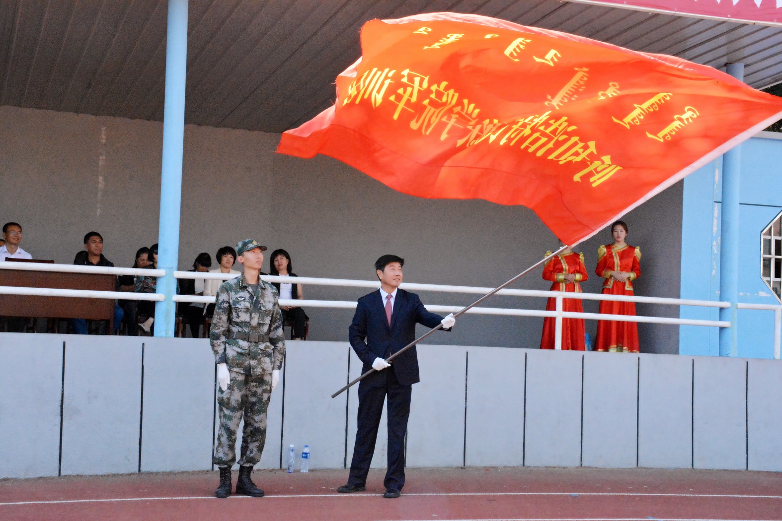 9月3日上午10时,Beat3652019级新生开学典礼暨军训动员大会在学校操场隆重举行。学校党委书记孙国权,党委副书记、校长格日乐图,党委委员、副校长贺希格吉雅,副校长纳丽娜,各职能部门负责人,二级学院党总支书记、院长、团总支书记、新生班主任、专职辅导员及承训部队教官和全体2019级新生参加大会。大会由军训团政委、学生工作部部长杨福梅主持。